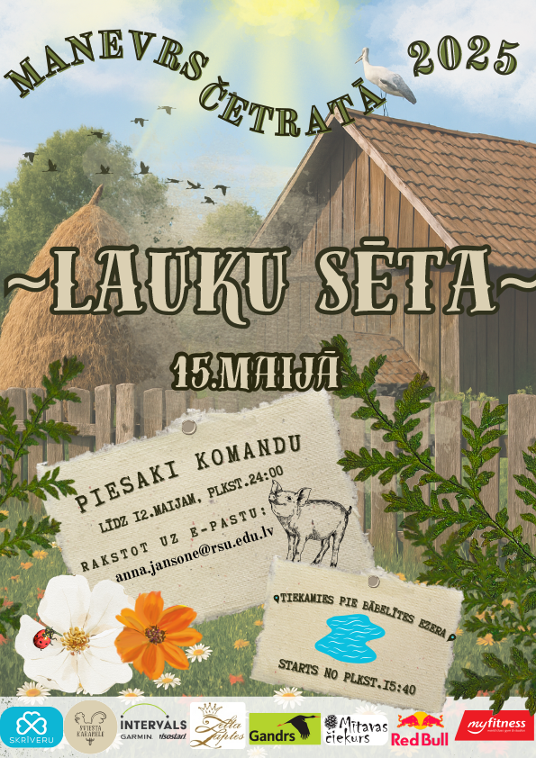 Ceturtdien, 15. maijā, RSU LSPA norisināsies piedzīvojumu sacensības Manevrs četratā 2025 – Lauku sēta. Pasākums paredzēts RSU LSPA studentiem, docētājiem un darbiniekiem.