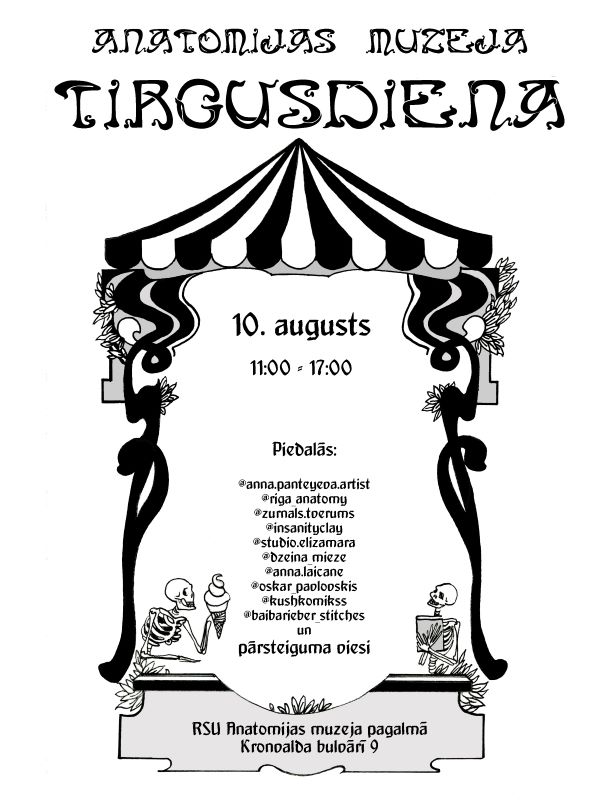 Sestdien, 10. augustā, no 11 līdz 17 RSU Anatomijas muzeja pagalmā (Kronvalda bulvārī 9) norisināsies Anatomijas muzeja Tirgusdiena.