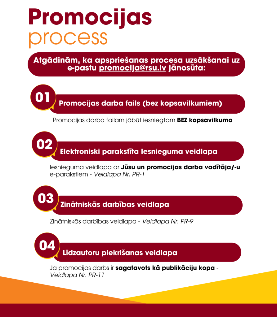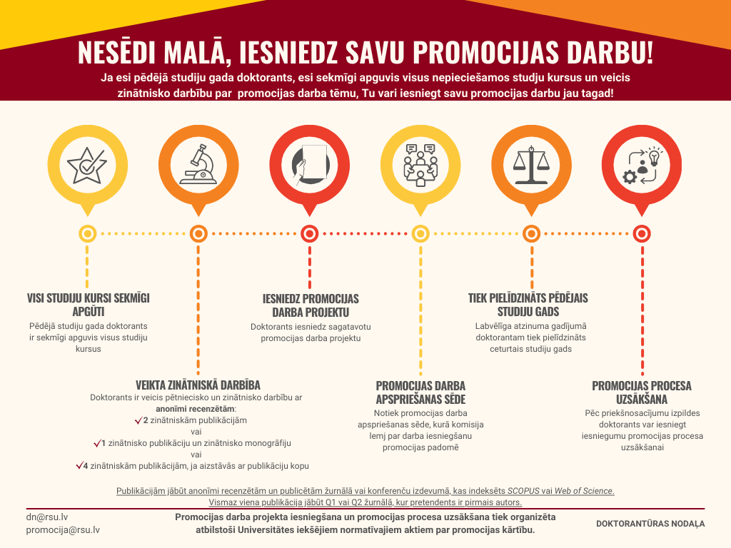 Promocijas padomes darbojas un promocija notiek saskaņā ar Ministru kabineta 2005. gada 27. decembra noteikumiem nr. 1001 Zinātniskā doktora grāda piešķiršanas (promocijas) kārtība un kritēriji, citiem Latvijas Republikas normatīvajiem aktiem, RSU Satversmi, šo nolikumu un citiem RSU iekšējiem normatīvajiem aktiem.