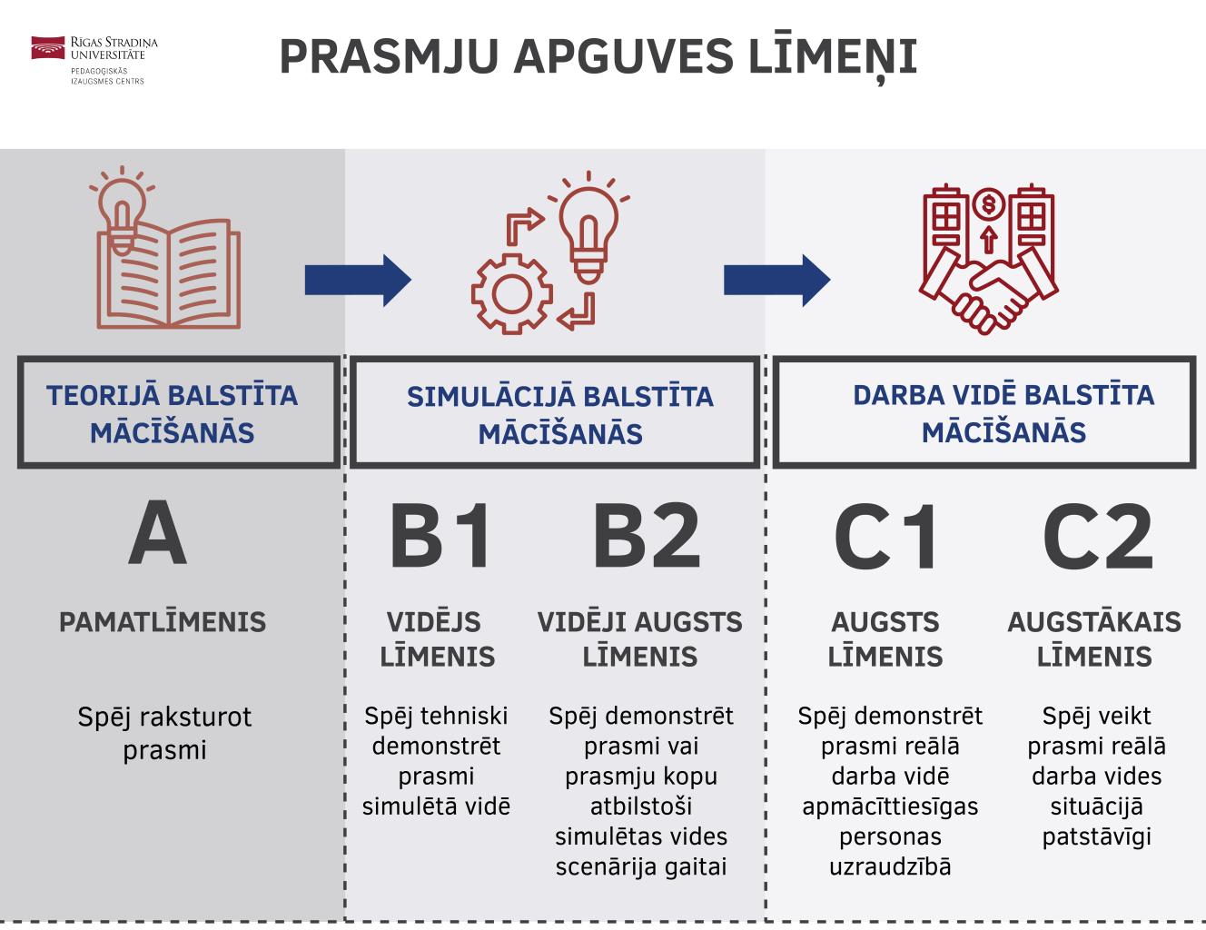 - Prasmju apguves metodoloģiju, kas nosaka veidus un paņēmienus, kā konkrētās prasmes apgūstamas.