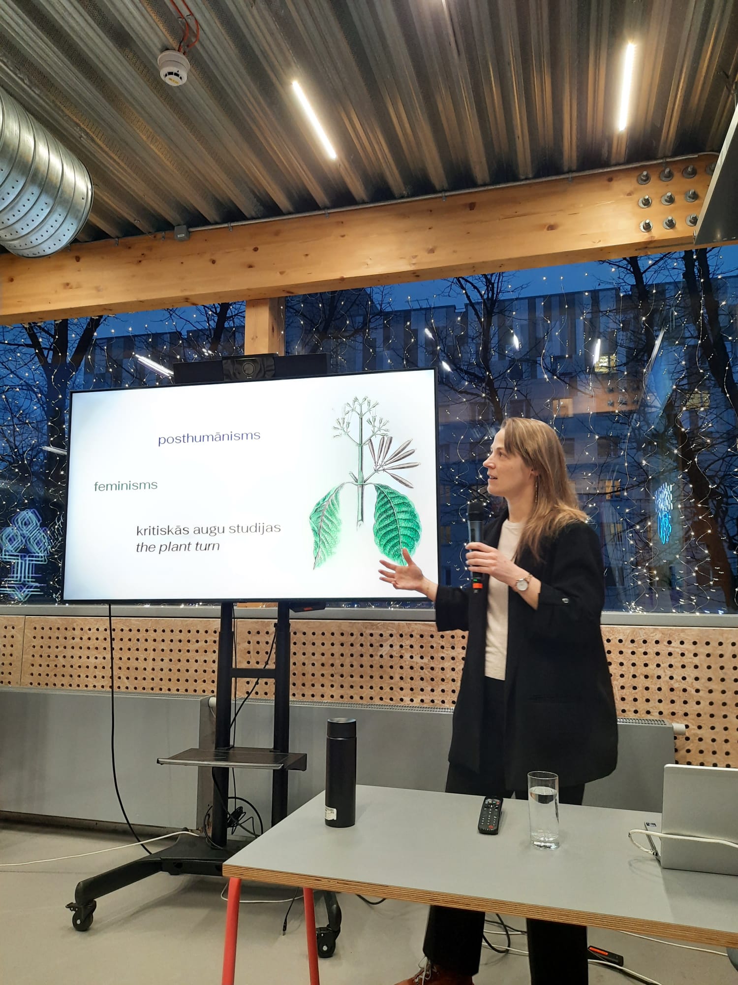 Īsrunā pētniece pastāstīja, kā rosīšanās dārzā pandēmijas laikā raisīja akadēmiskas pārdomas par sieviešu un augu attiecībām, savukārt pētnieciskajā projektā tiek izmēģināti alternatīvi pasaules skaidrojuma modeļi, kur visu lietu mērs ir nevis cilvēks, bet augi.