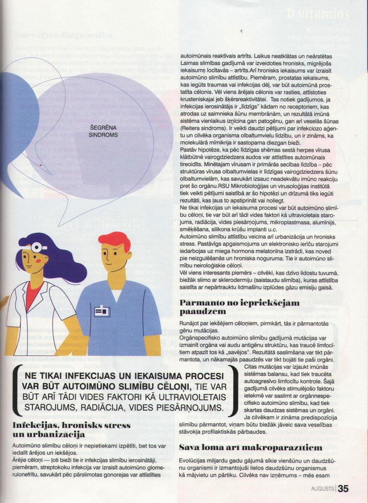 - Žurnālā “Veselība” publicēts raksts “Imunitātes disbalanss”