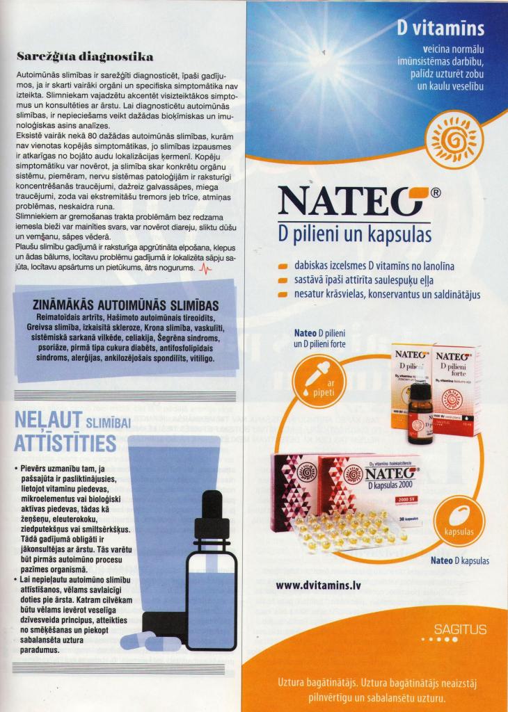 Tajā skaidrots, ka dažādas slimības, ko pazīstam, kā piemēram, cukura diabēts, izkaisītā skleroze u.c. ir autoimūnās slimības, kas saistītas ar cilvēka imūnās sistēmas funkcionēšanas traucējumiem. Kas ir slimību cēloņi? Vai to var pārmantot? Kā to var diagnosticēt? Atbildes uz šiem jautājumiem atrodamas rakstā (skatīt pievienoto pielikumu).