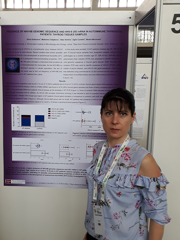 Projekta ietvaros vadošā pētniece Alīna Sultanova sagatavoja zinātniskās tēzes Presence of HHV-6B genomic sequence and HHV-6 U83 mRNA in autoimmune thyroiditis patients’ thyroid tissues samples, kas tika pieņemtas zinātniskajā kongresā 11th International Congress on Autoimmunity un tika prezentētas 2018. gada 16.–20. maijā