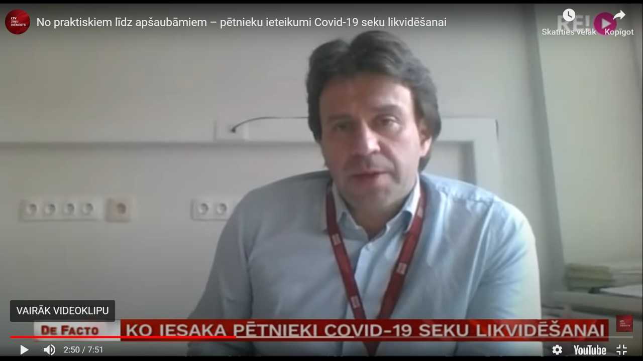 RTA prof. Veltas Ļubkinas un RSU prof. Ivara Vanadziņa dalība LTV1 raidījumā De Facto par tēmu Ko iesaka pētnieki Covid-19 seku likvidēšanai (06.12.2020.) Video / LTV.LV / Raksts – No praktiskiem līdz apšaubāmiem – pētnieku ieteikumi Covid-19 seku likvidēšanai – 06.12.2020 (lsm.lv)