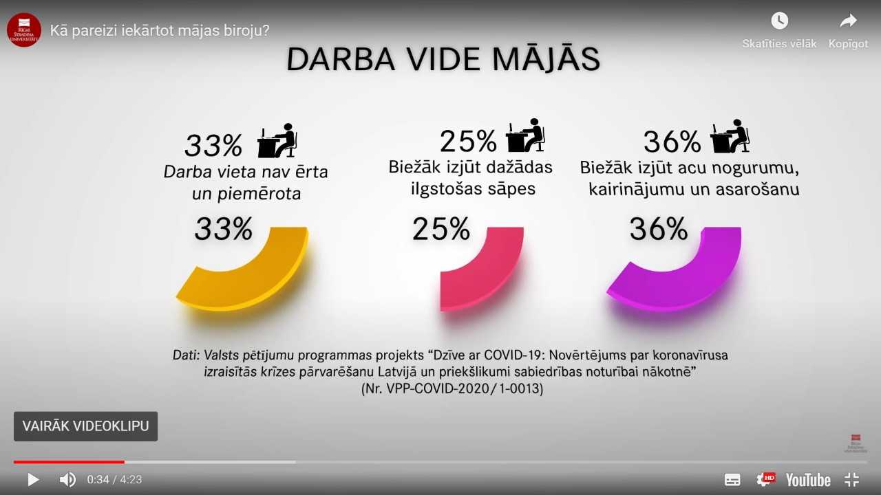 Video ieteikumi visiem, kas pandēmijas laikā strādā attālināti Kā vingrot mājas birojā? un Kā pareizi iekārtot mājas biroju?