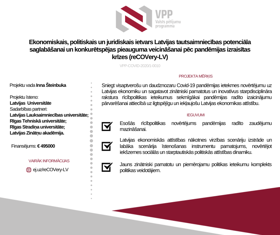 Ekonomiskais, politiskais un juridiskais ietvars Latvijas tautsaimniecības potenciāla saglabāšanai un konkurētspējas pieauguma veicināšanai pēc pandēmijas izraisītas krīzes (reCOVery-LV)