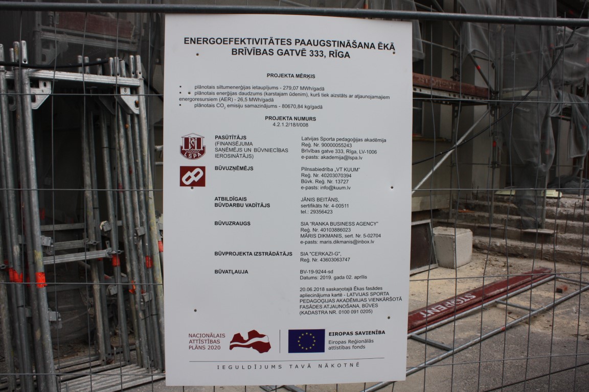 Projekts paredz nozīmīgu Latvijas Sporta pedagoģijas akadēmijas (LSPA) ēkas atjaunošanu Brīvības gatvē 333, kas būs vērienīgākā renovācija kopš 1959. gada. Ar Eiropas Reģionālās attīstības fonda atbalstu tiks atjaunota ēkas fasāde.