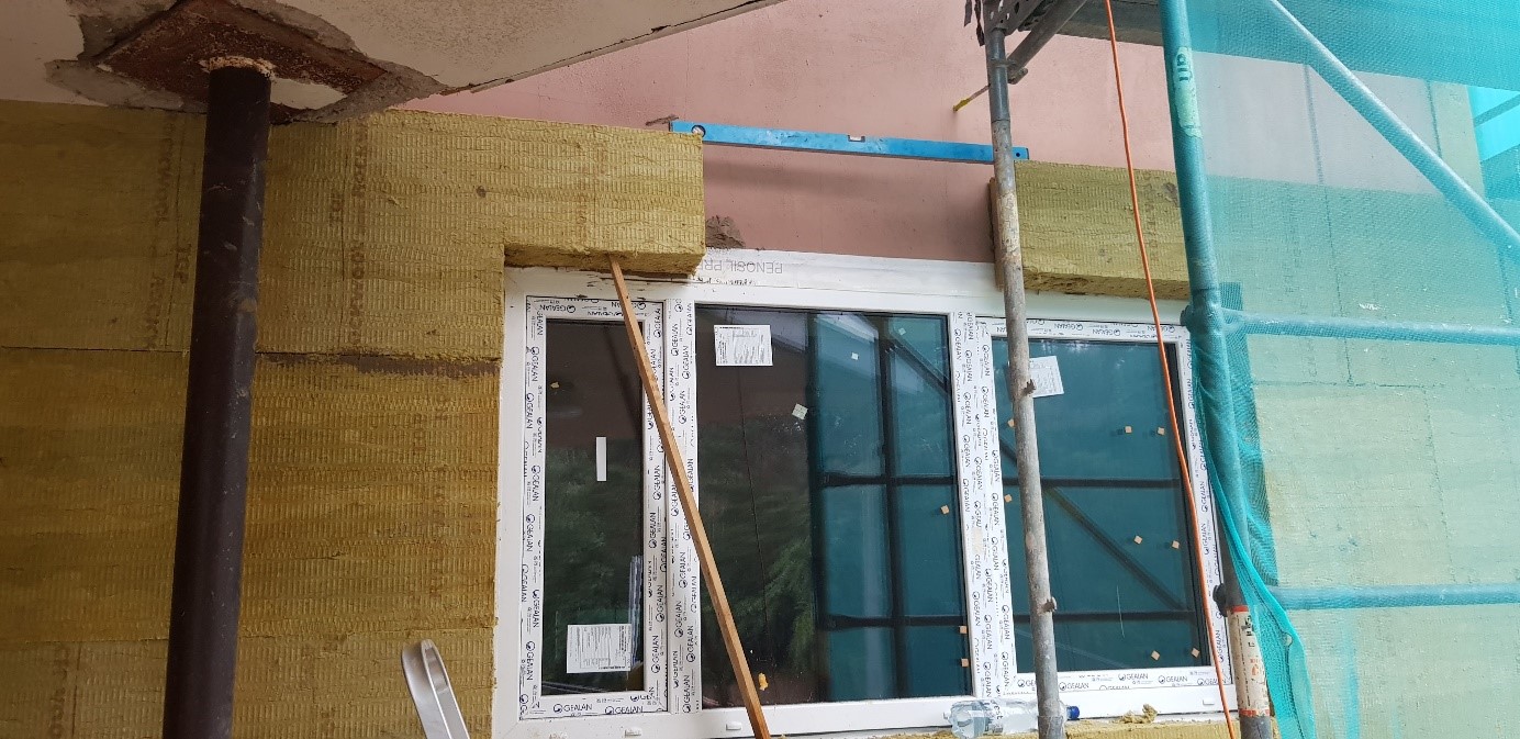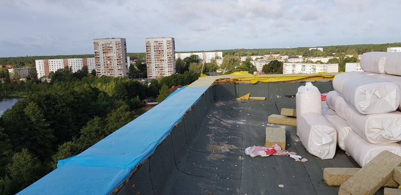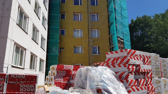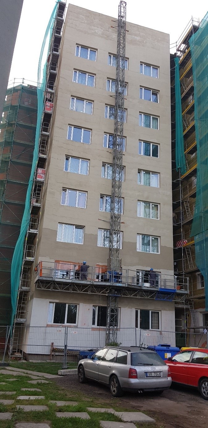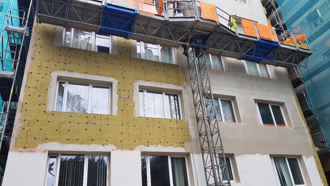 - Objektā ievesti visa fasādes siltumizolācijas vate, kā arī lielākā daļa no logiem
