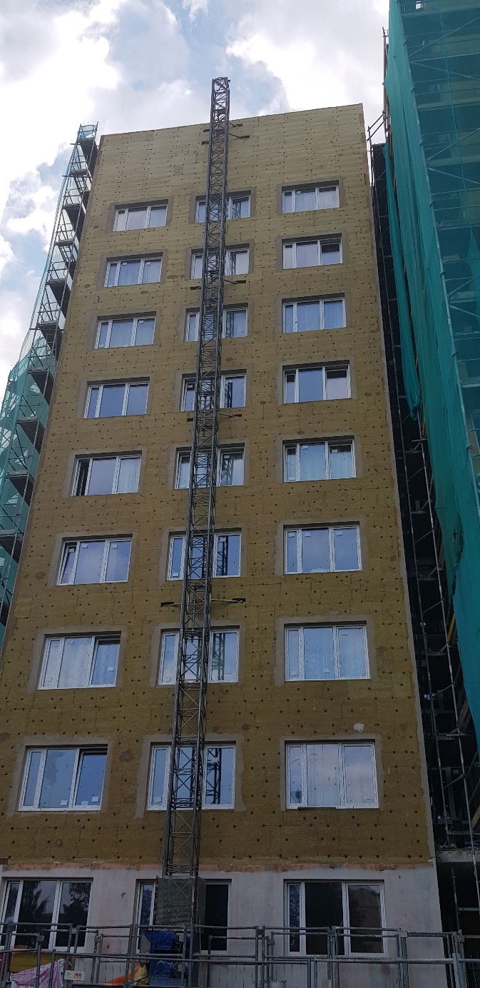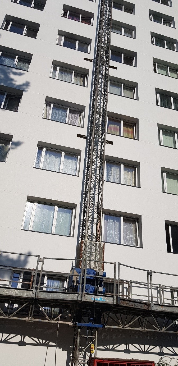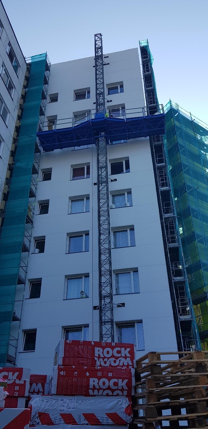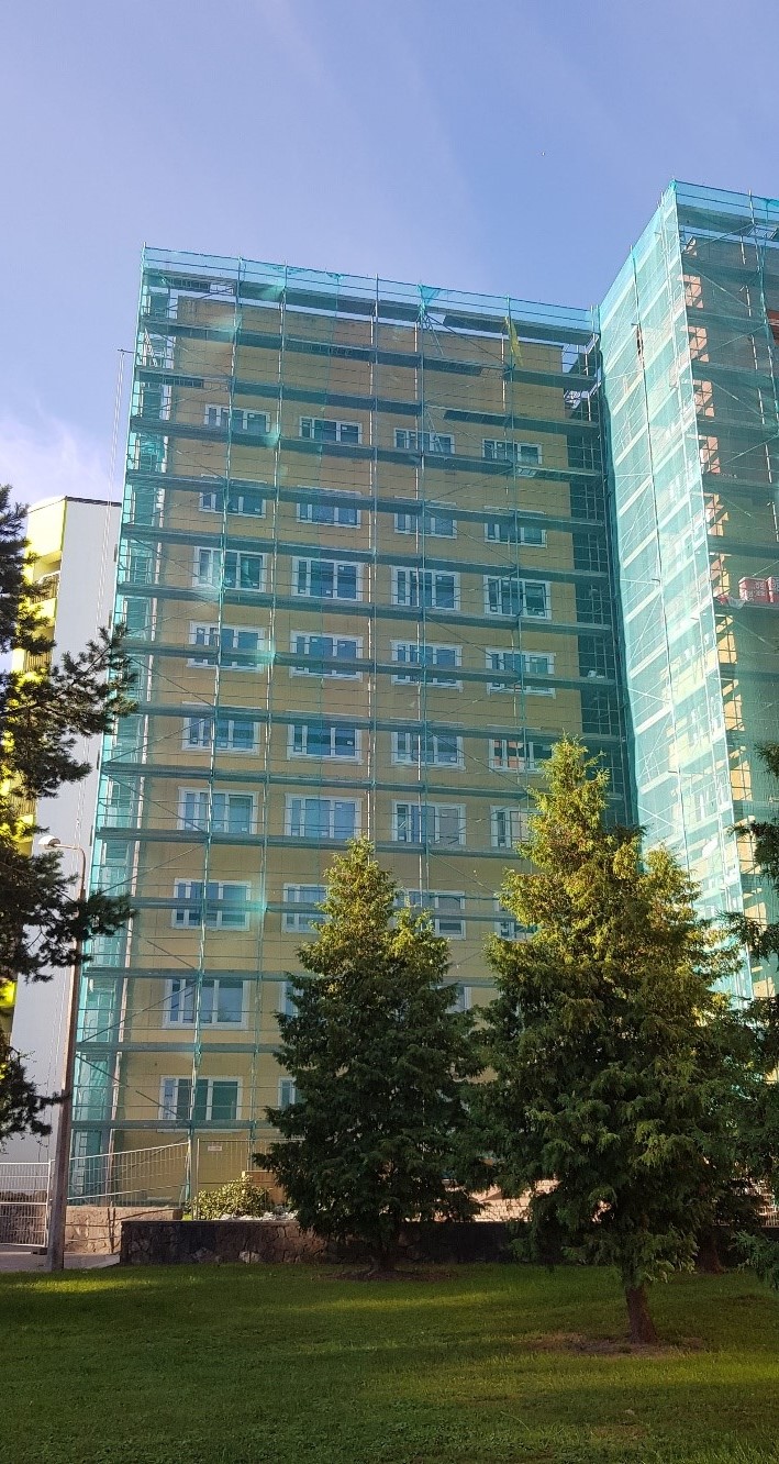 - Objektā ievesti visa fasādes siltumizolācijas vate, kā arī lielākā daļa no logiem