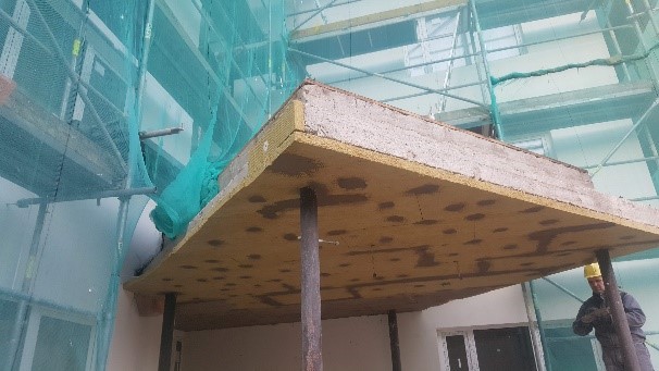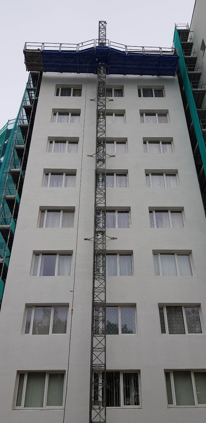 - Daļēji ir pabeigts darbs pie pirmā posma, un notiek sastatņu un pacēlāju pārvietošana uz otro posmu