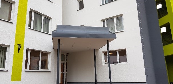 - Fasādes izbūve un ieejas mezglu izbūve