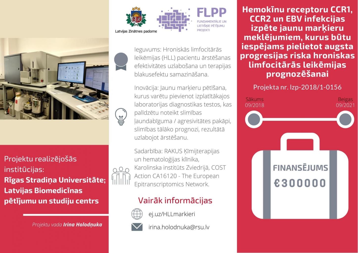 Tagadējais projekts ir balstīts uz mūsu līdzšinējiem rezultātiem un tā mērķis ir jaunu prognostisku marķieru, šūnas virsmas hemokīnu receptoru CCR1 un CCR2, validācija. Projekts ietver 90 HLL pacientu retrospektīvu pētījumu, 60 – ar pirmreizēju diagnozi un 30 – ar recidīvu pēc ārstēšanas, un pētījumu no jauna iekļautu HLL pacientu vidū.