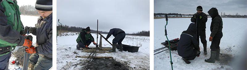 Sapropeļa paraugu ieguvi veica SIA Geo Consultants. Laika apstākļi šajā gadā bija īpaši labvēlīgi sapropeļa paraugu ieguvei. Sapropeļa iegūšana uz ledus virsmas atvieglo procesu un nodrošina to, ka paraugi ir mazāk ūdeņaini, tātad labākas kvalitātes. Kopumā paraugi tika iegūti ar zondējuma urbja palīdzību, kurš tika speciāli izgatavots sapropeļa paraugu ņemšanai, jo sapropeļa īpatnējās struktūras dēļ nav iespējams izmantot kūdras un grunts paraugu iegūšanas urbjus. Šim rokas urbim augšējā daļā bija speciāli izveidots vārsts, kas ļāva izspiesties ūdenim un dūņām no kapsulas, savukārt ceļot ārā neļāva ūdenim atkal ieplūst zondē.