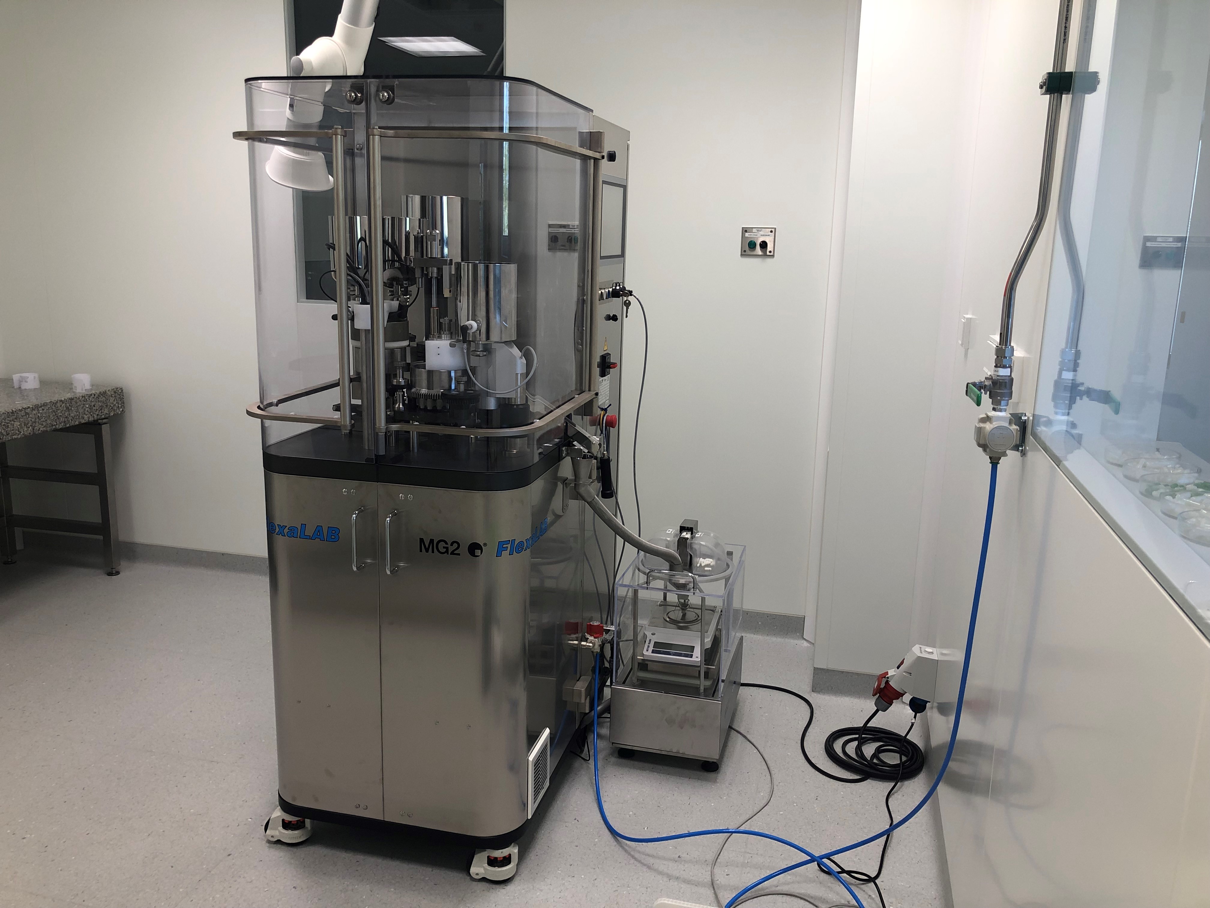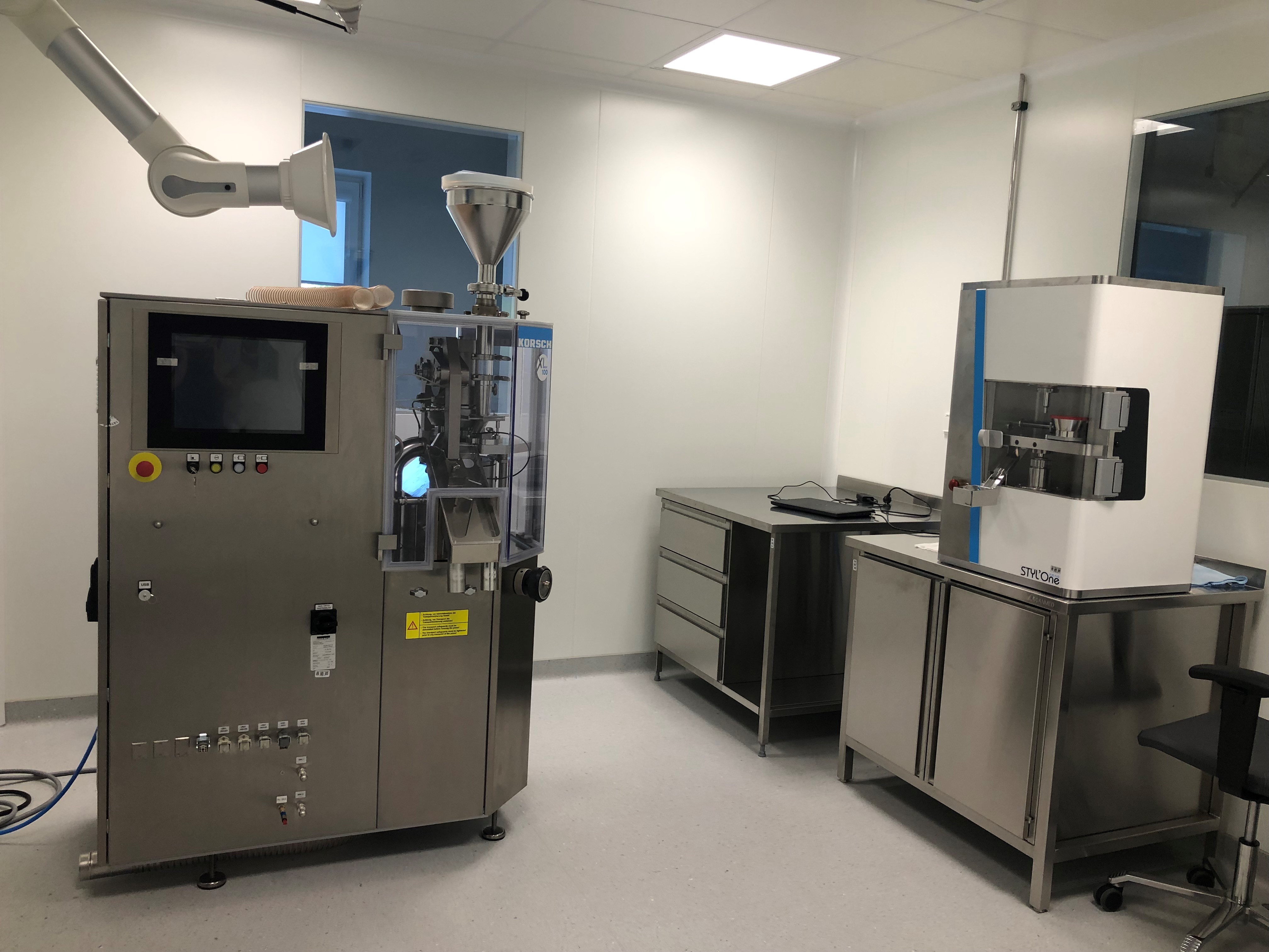 Tabletēšanas telpa (rotācijas tablešu prese un vienpuansona kompaktēšanas simulators).