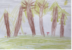 "Es ar vectētiņu vasarā braucu sēņot. Es pazīstu gailenes un bekas. Man ļoti patīk mežā – tur smaržo pēc sūnām, kokiem. Tikai nepatīk, ka odi kož. Vectētiņš vienmēr saka: "Skaties kur liec kājas, lai neuzkāp kādai sēnei!" Vectētiņš man rādīja kā meklēt baravikas, tās slēpjas zālē kā brūni rūķi.