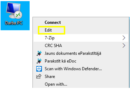 1. Ja Jums ir "Darba PC" ikona, tad ar labo peles taustiņu spiediet uz tās un spiediet uz Edit, tādējādi uzreiz varēsiet piekļūt iestatījumiem. Sekojiet soļiem zemāk.