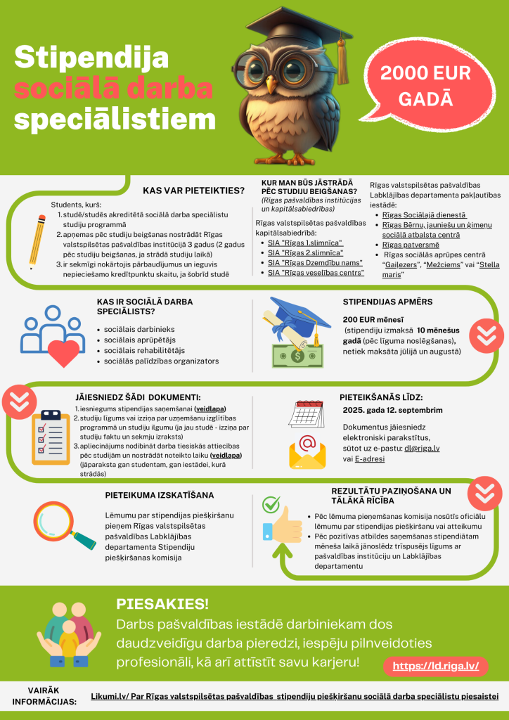 Rīgas domes Labklājības departamenta stipendija sociālā darba speciālistiem