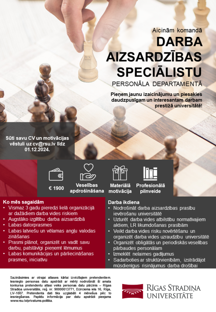Struktūrvienība vai projektsPersonāla departamentsPieteikšanās līdz01.12.2024.Darba alga (bruto)1900Vietu skaits1Mēs piedāvājam