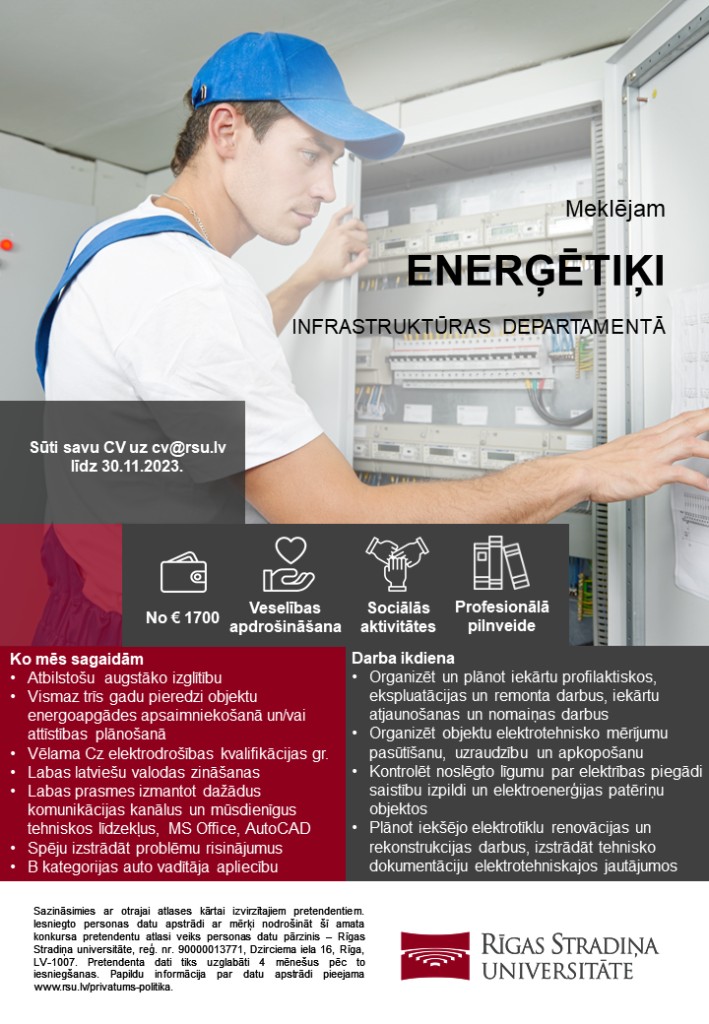 Struktūrvienība vai projektsInfrastruktūras departamentsPieteikšanās līdz30.11.2023.Darba alga (bruto)no 1700Vietu skaits1Mēs piedāvājam