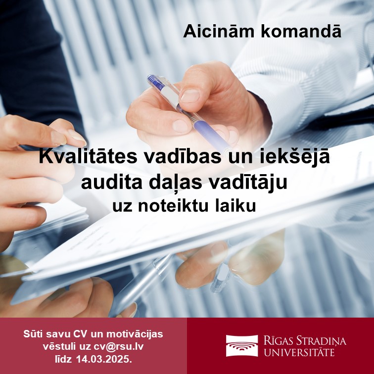 Rīgas Stradiņa universitāte aicina pievienoties komandai spēcīgu un mērķtiecīgu Kvalitātes vadības un iekšējā audita daļas vadītāju. Ja kvalitāte un nepārtraukta pilnveide ir Tavs aicinājums, tad šī ir Tava iespēja!