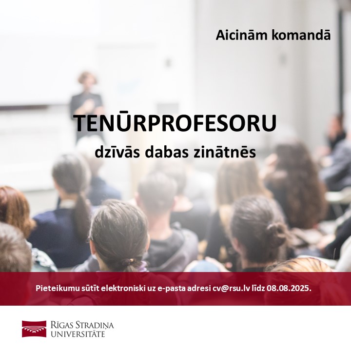 Rīgas Stradiņa universitāte aicina pieteikties uz pilnas slodzes zinātnes profesora (tenūrprofesora) amatu dzīvās dabas zinātņu jomā vienā no modernākajām universitātēm Baltijā veselības aprūpes un sociālo zinātņu jomā.