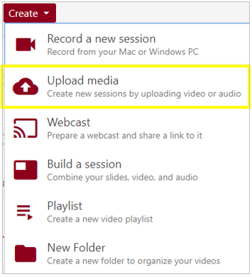 Pieslēdzieties Panopto un spiediet uz pogas Create.
