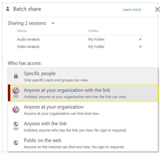 no saraksta izvēlieties Anyone at your organization with the link