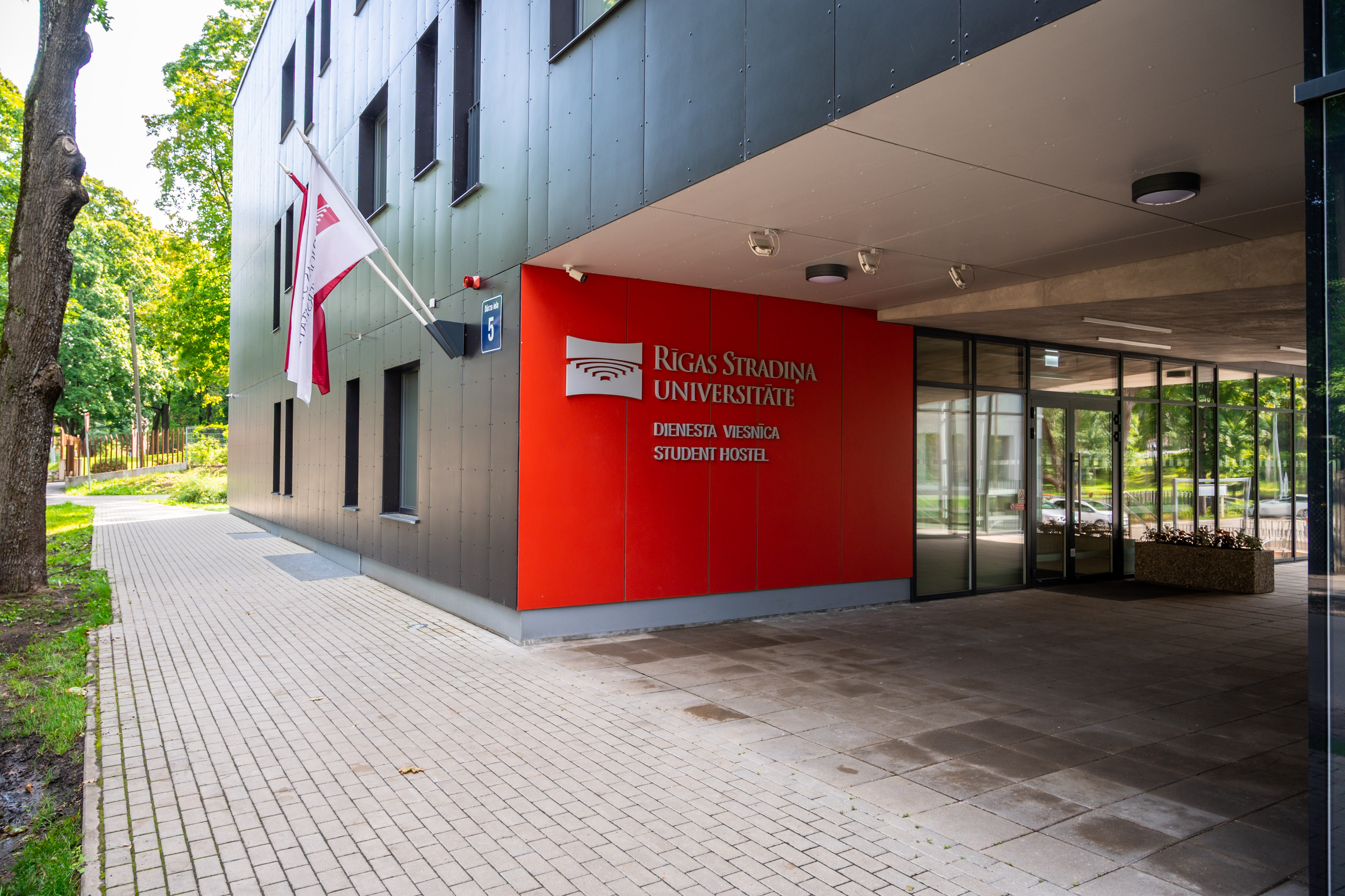 Dienesta viesnīca Dārza ielā 5 atrodas 300 metru attāluma no RSU galvenās ēkas Dzirciema ielā 16.