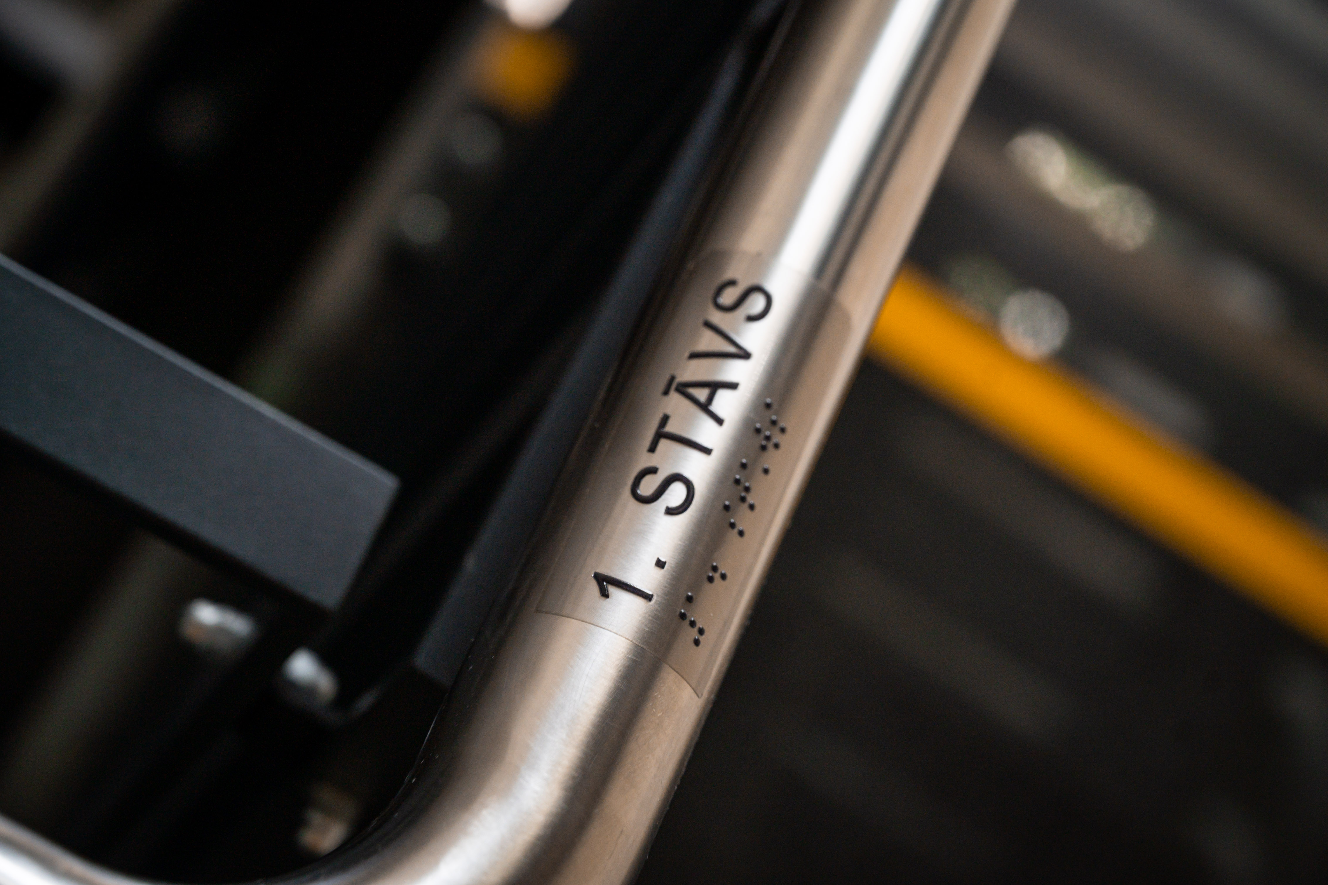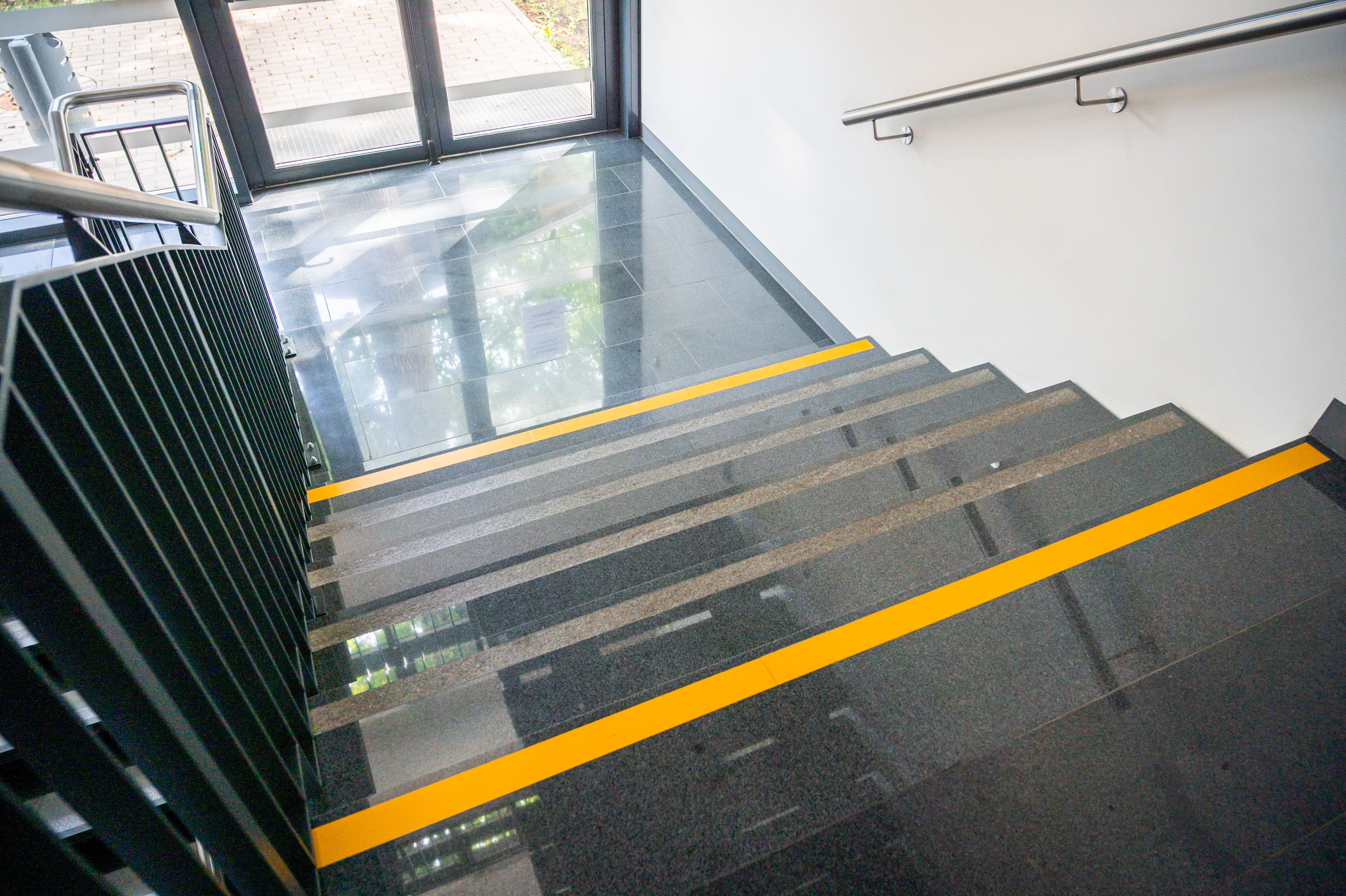 - Ar kontrastējošu krāsu marķēti pakāpieni