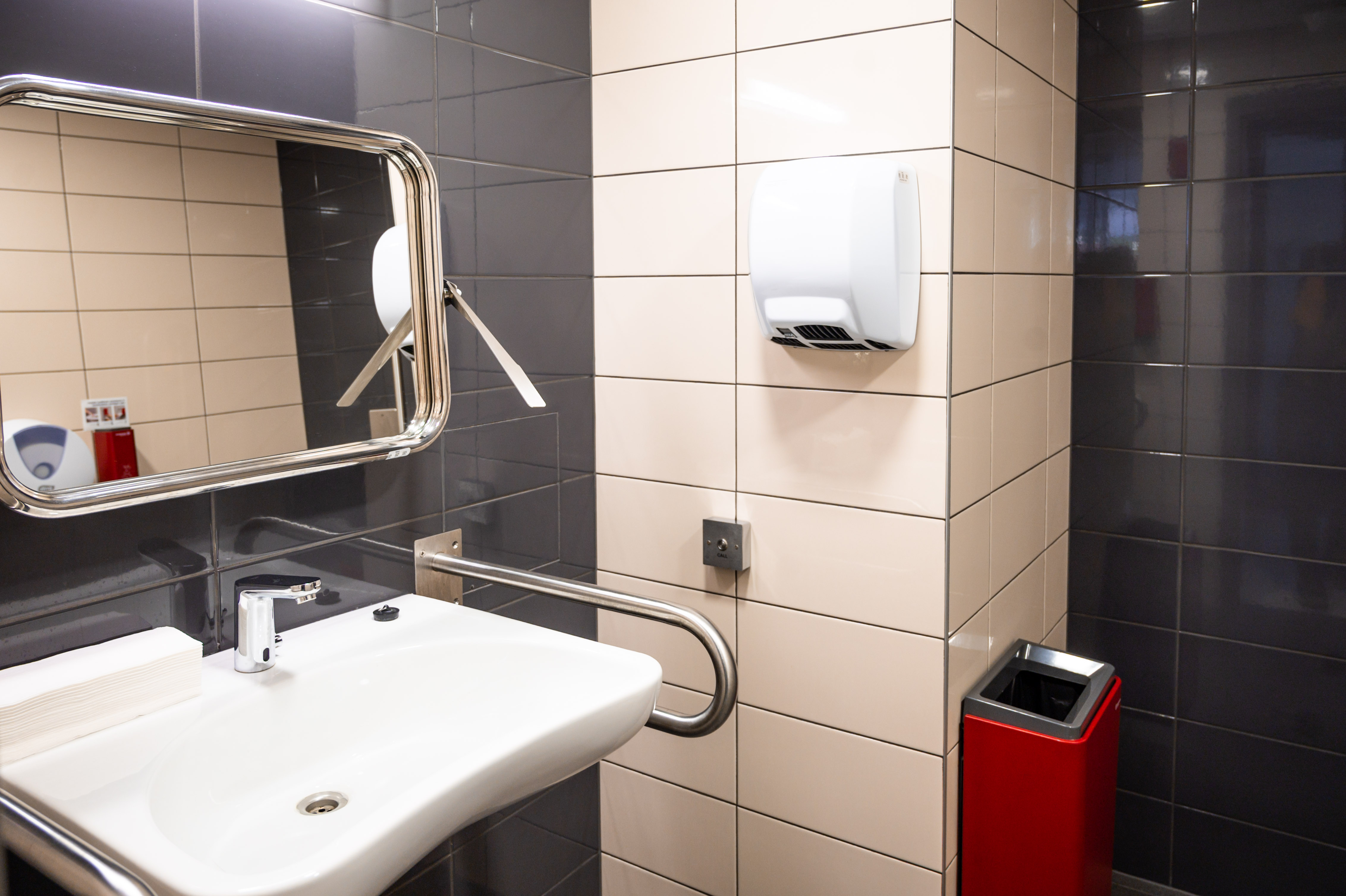 Numuri, kuri paredzēti personām ar kustību ierobežojumiem, pēc platības ir lielāki, mēbeles ir novietotas zemāk, dušas un labierīcību telpa ir pielāgota (ar speciālo dušas krēslu, balstiem, palīdzības pogu un regulējamu spoguli).