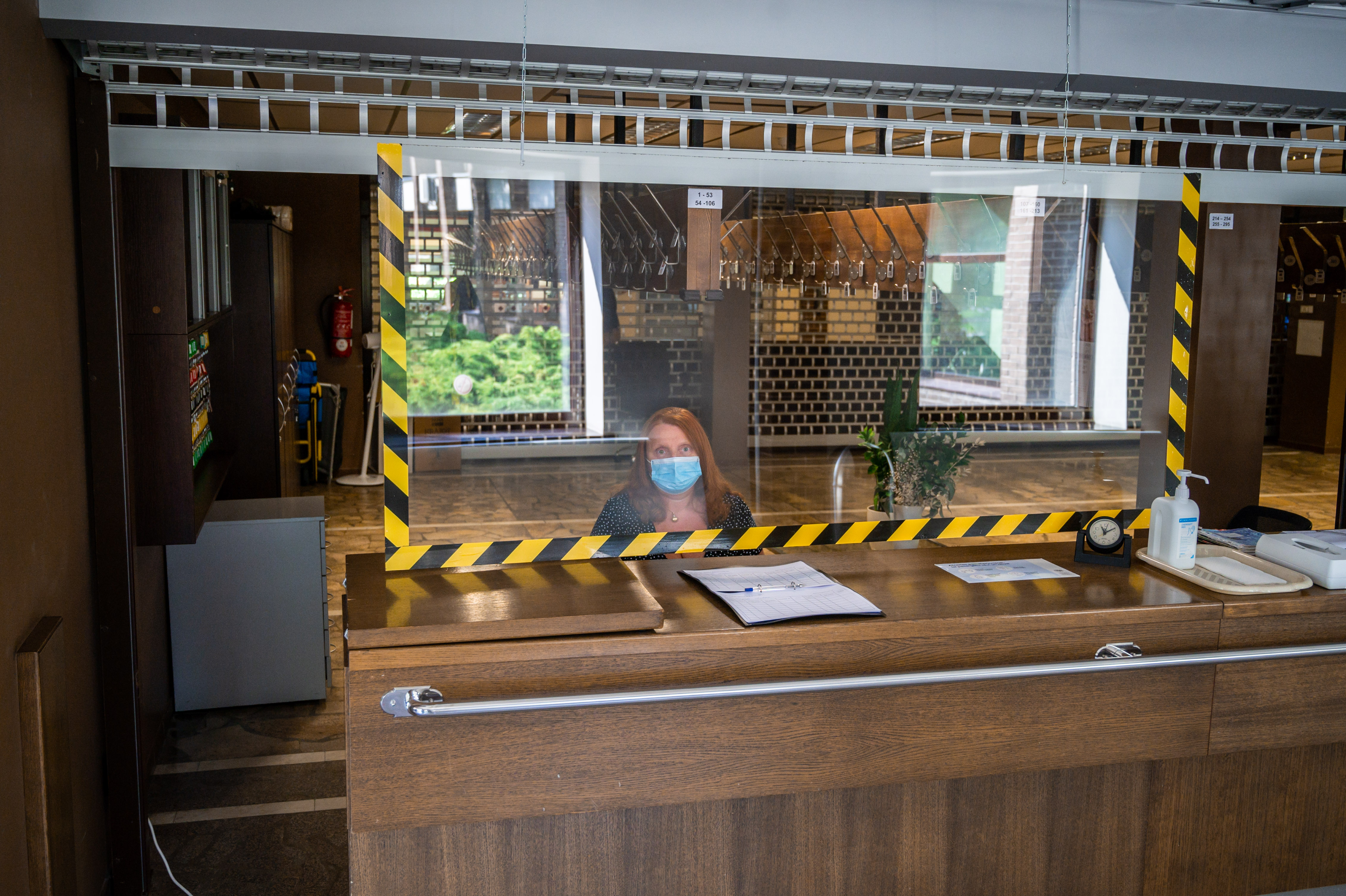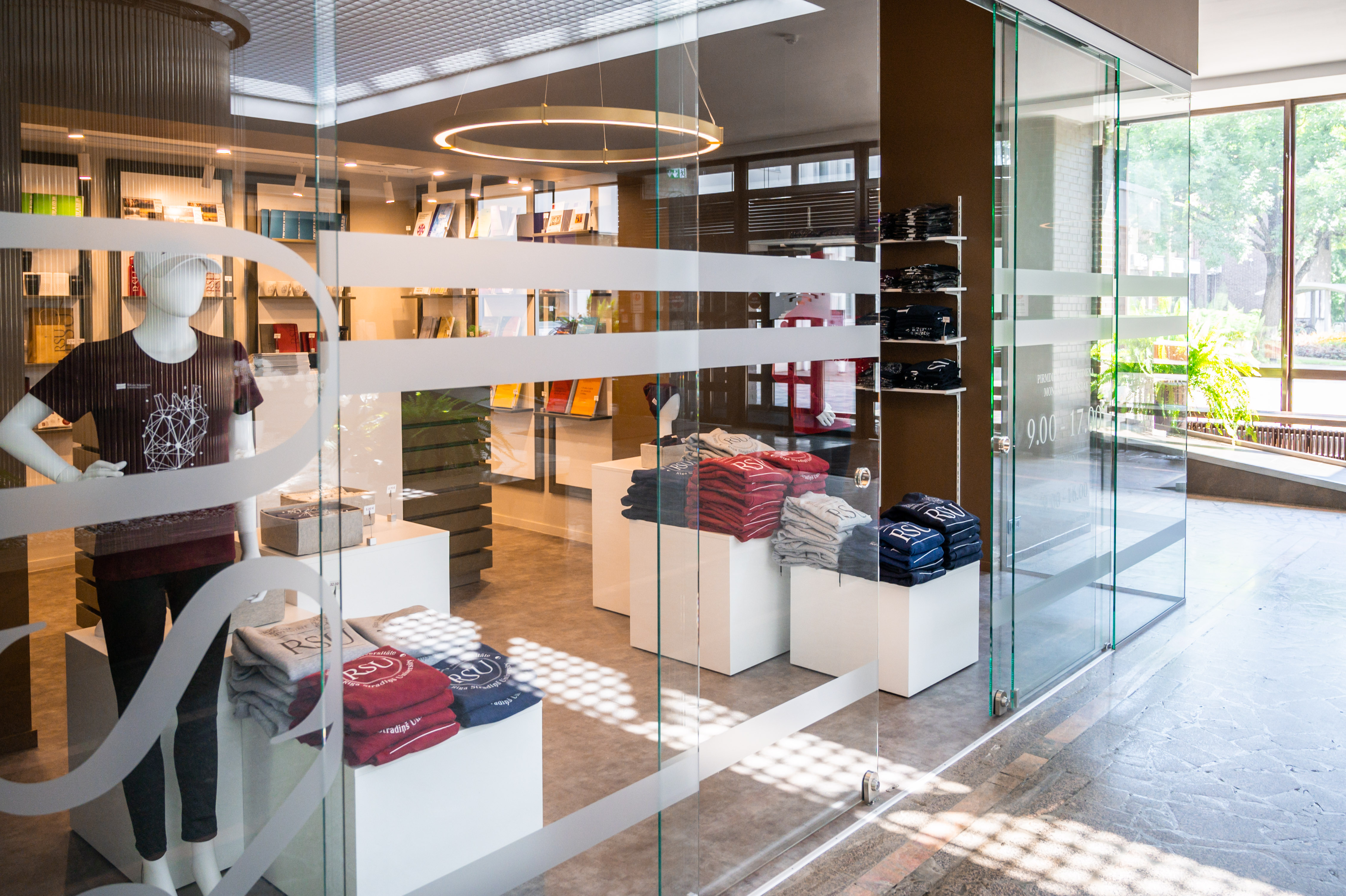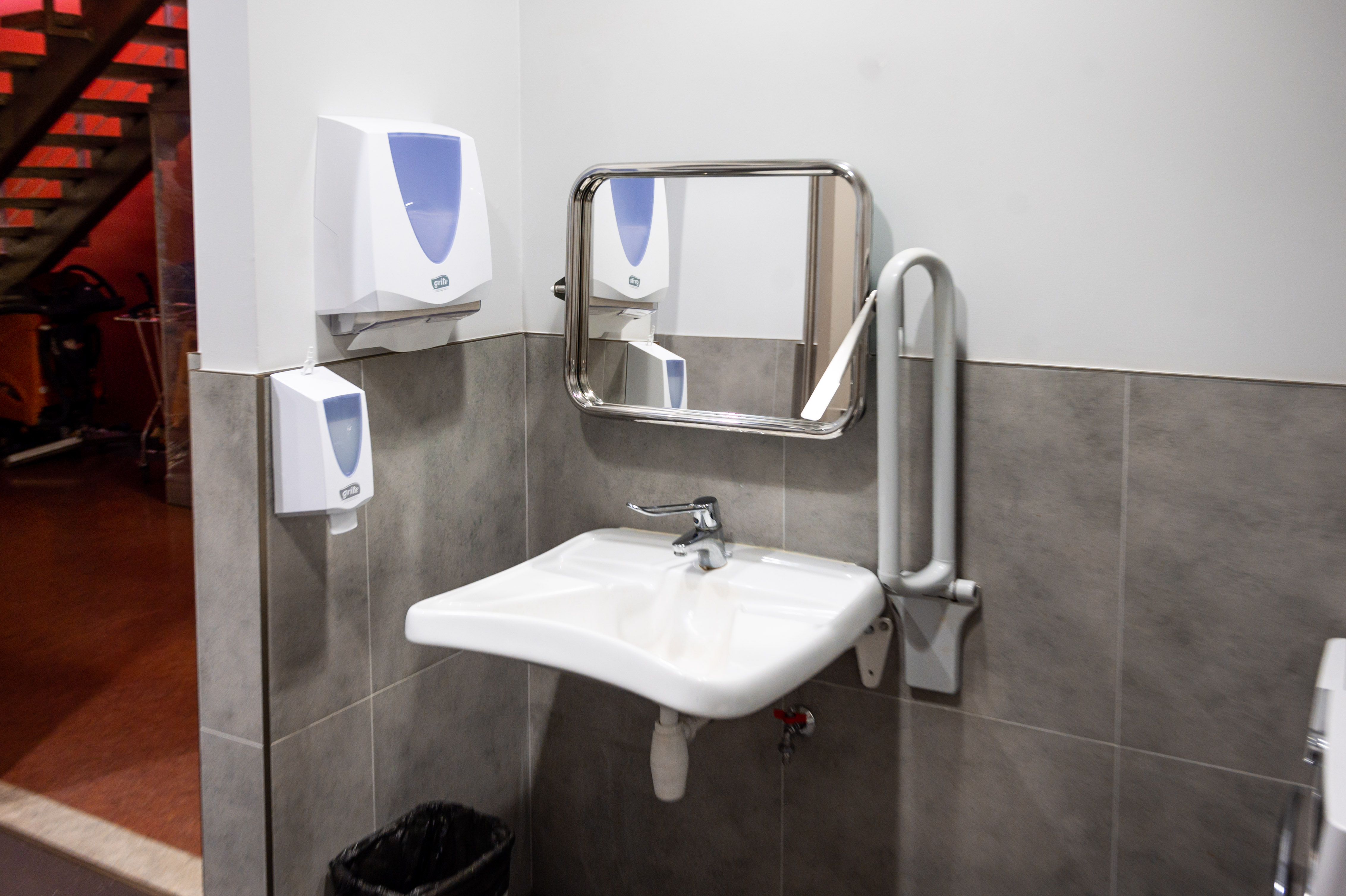 - Pirmajā stāvā, vestibilā, ierīkots panduss, lai nokļūtu uz visiem ēkas korpusiem – garderobi, ēdnīcu, liftiem, bibliotēku, brīvpieejas kopēšanas iekārtām, aulu utt.