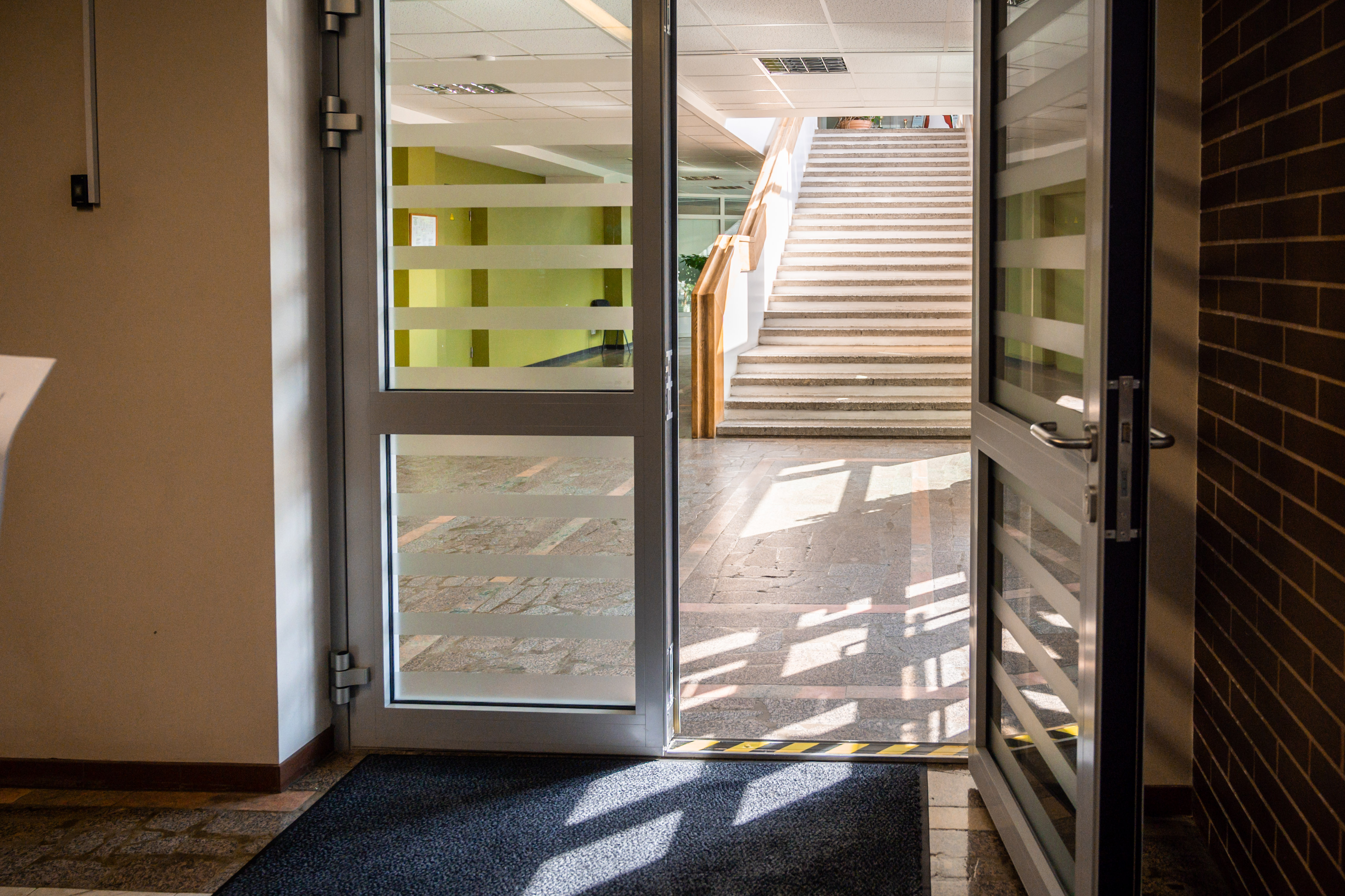 - Ērta iekļūšana ēkā personām ar kustību traucējumiem – nav pakāpienu un sliekšņu pie kabinetiem un auditorijām