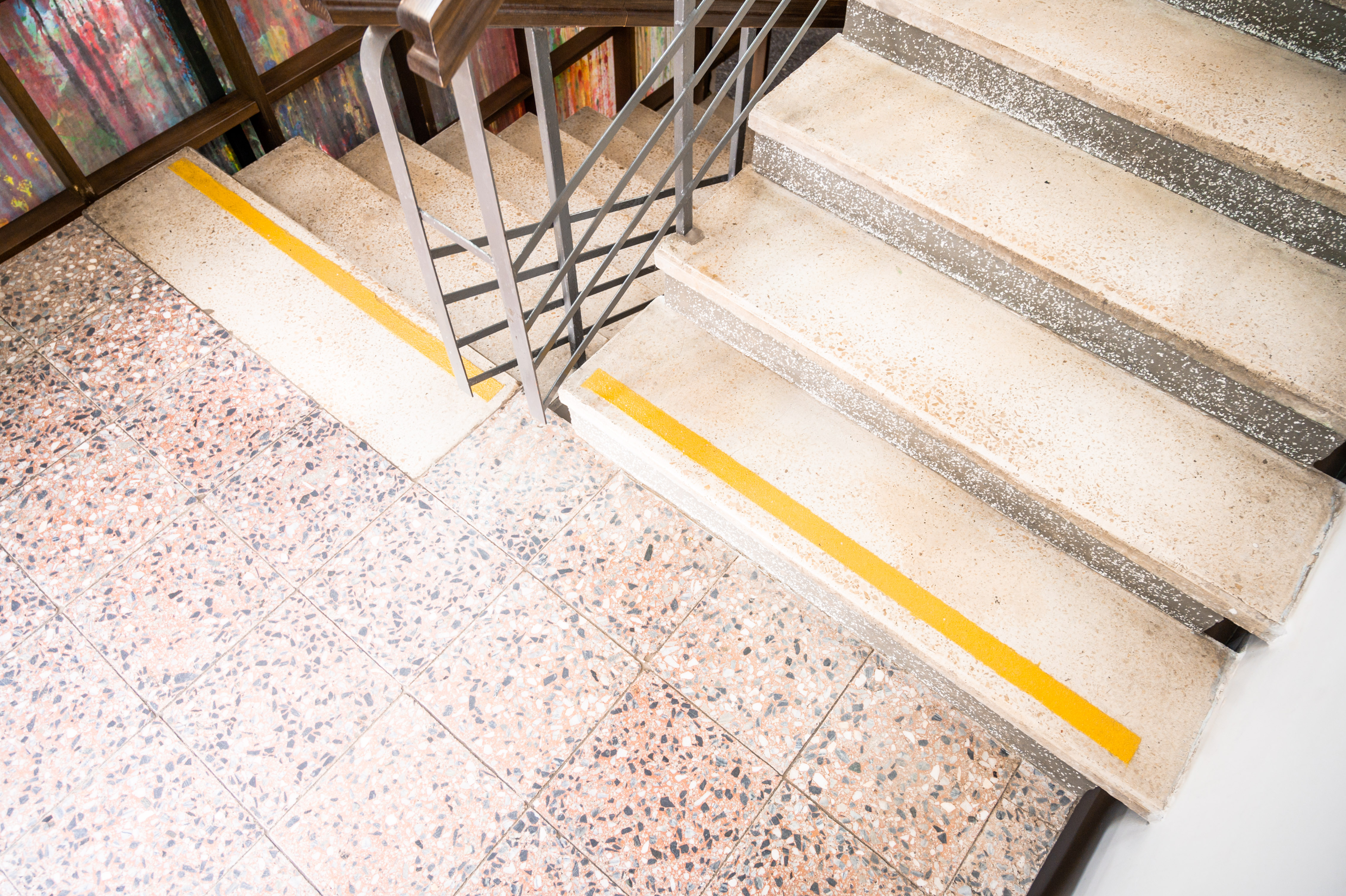 - Ar kontrastējošu krāsu marķēti pakāpieni