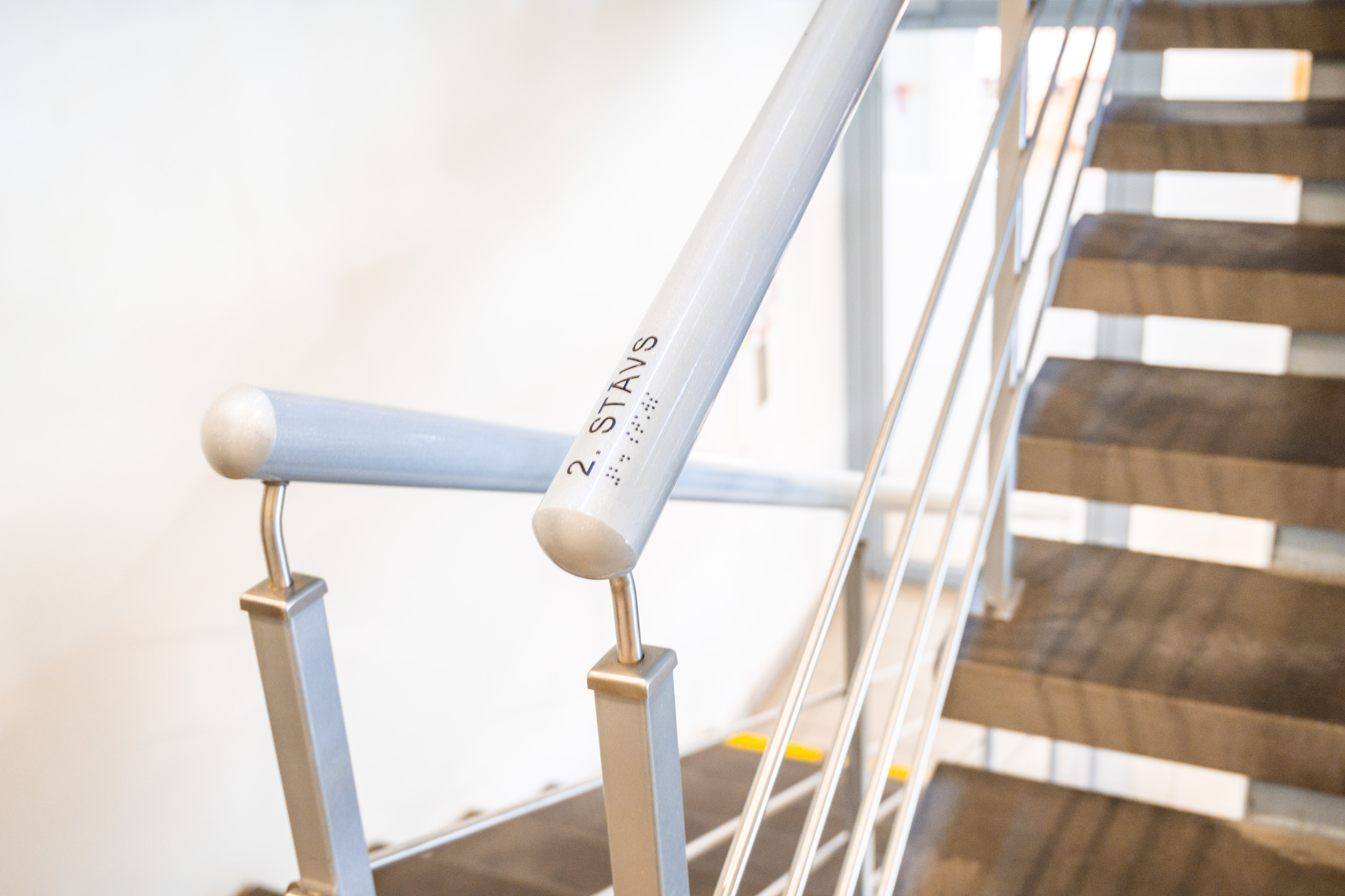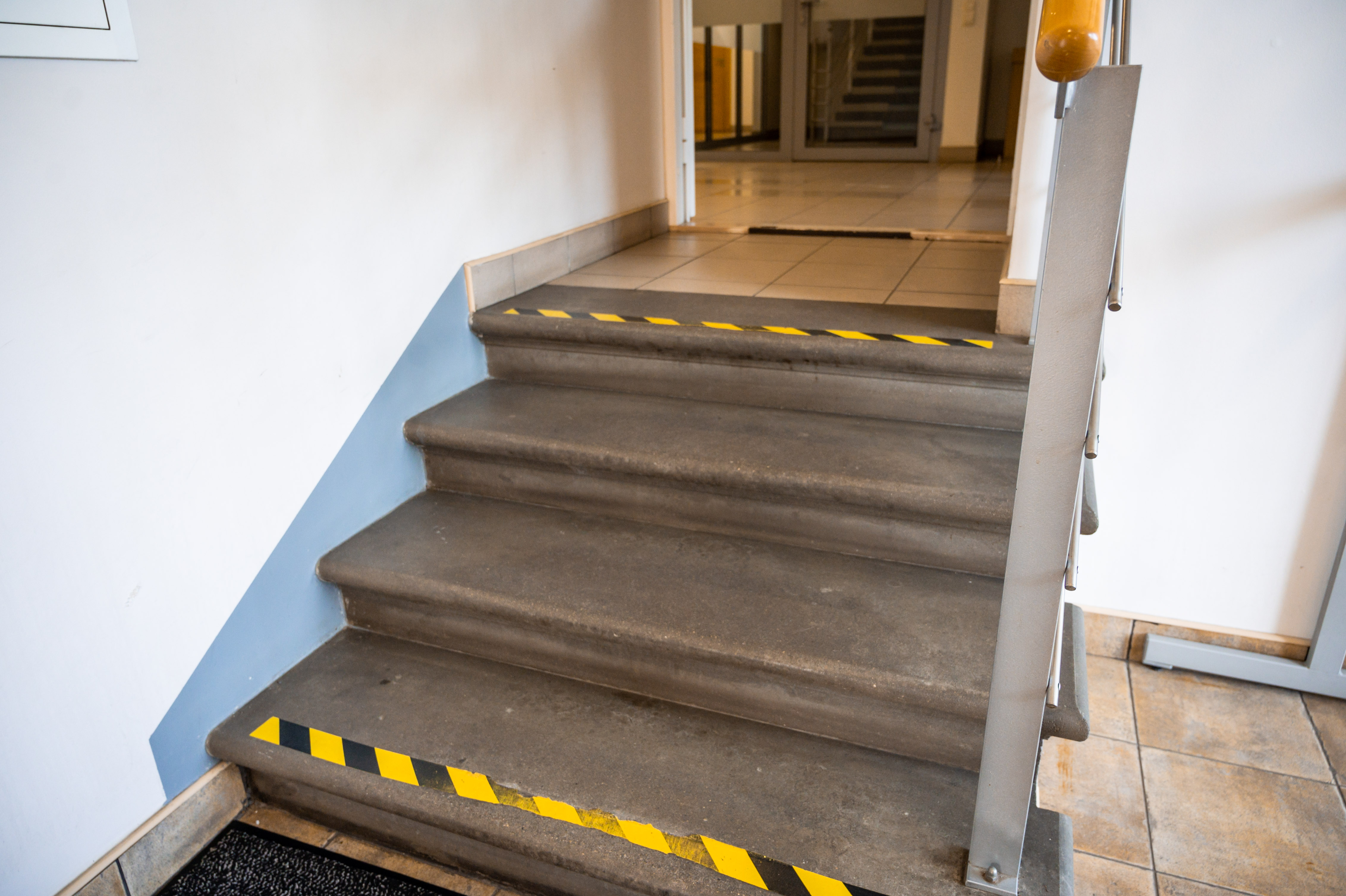 - Ar kontrastējošu krāsu marķēti pakāpieni