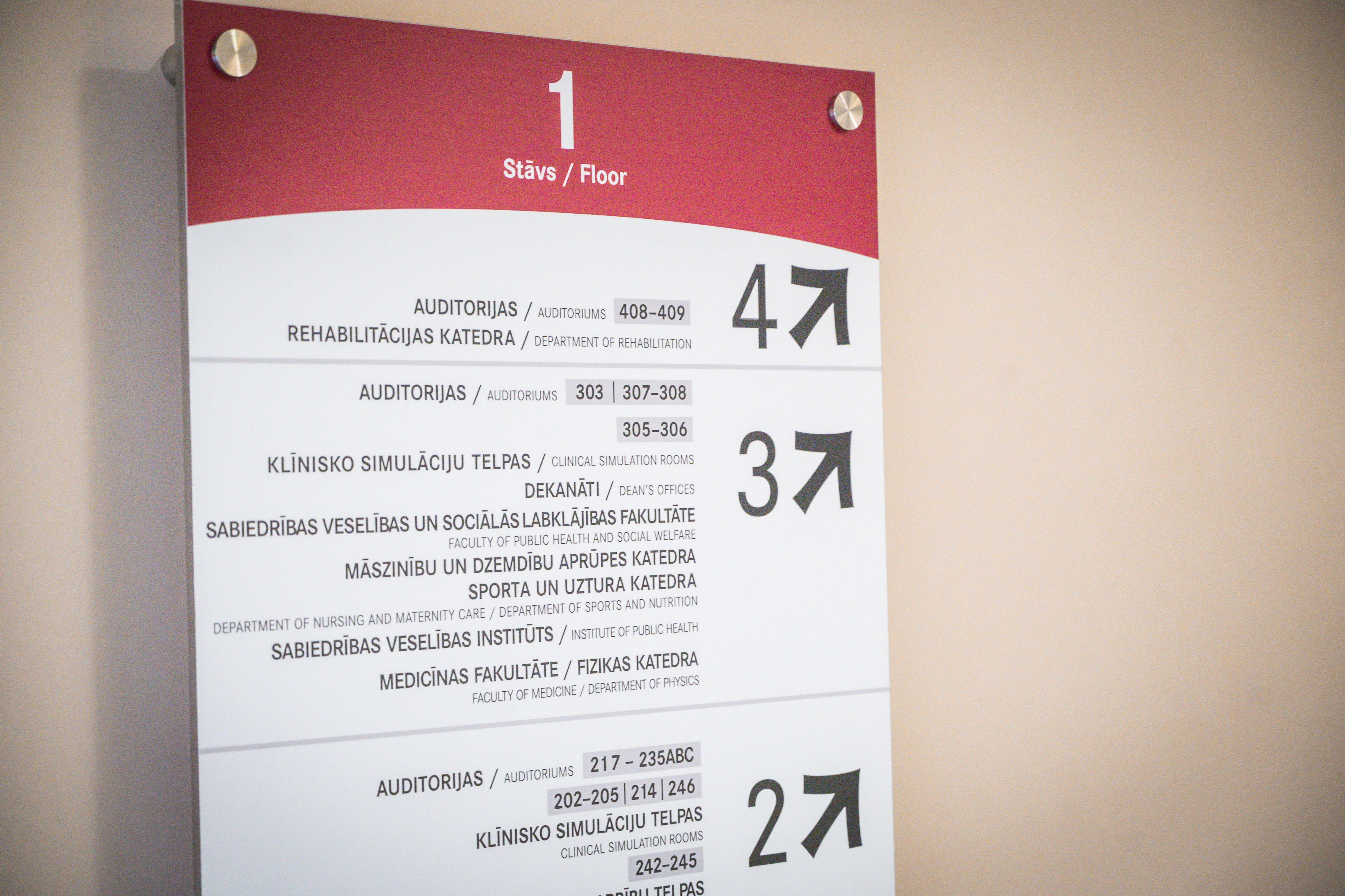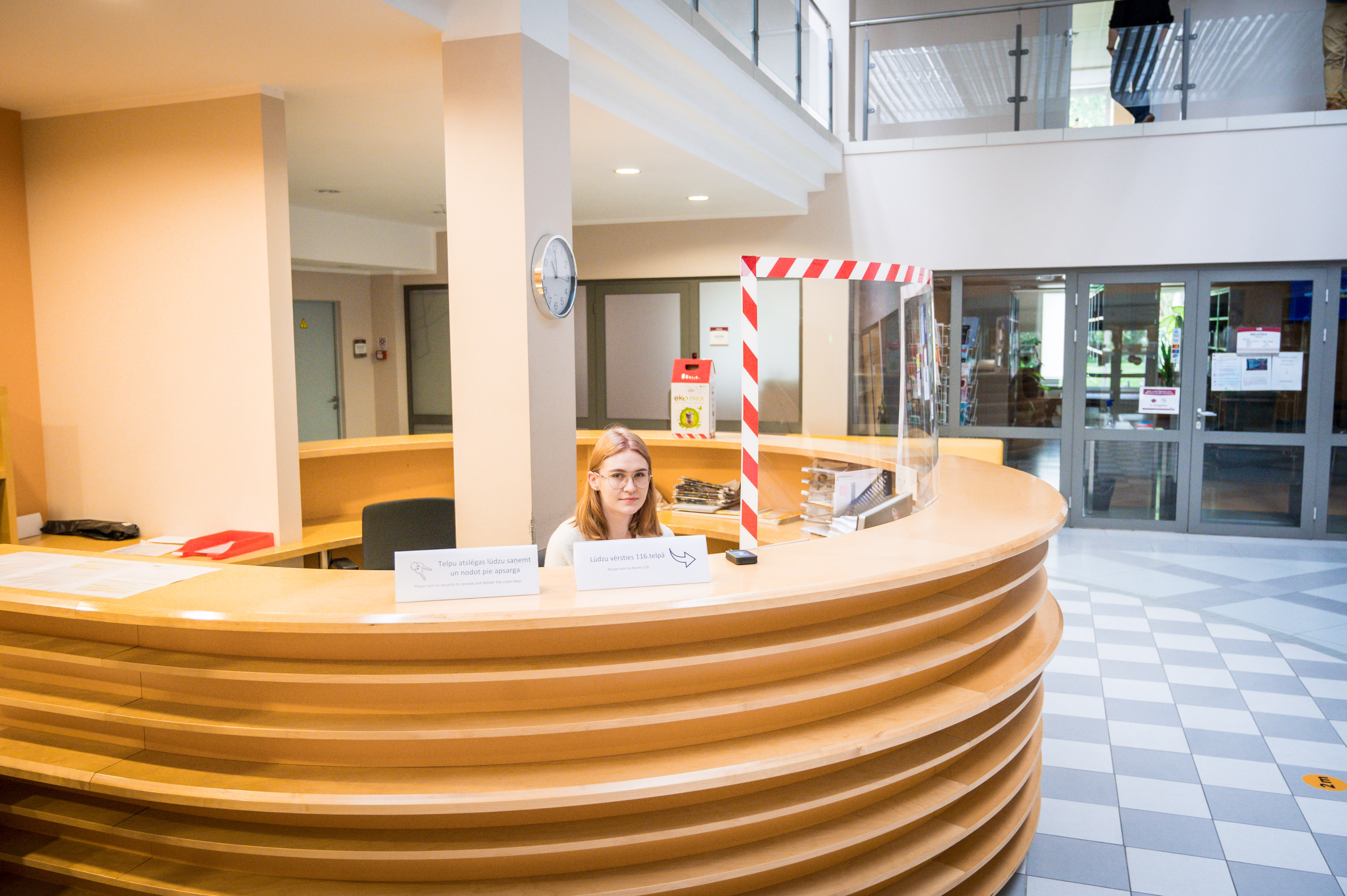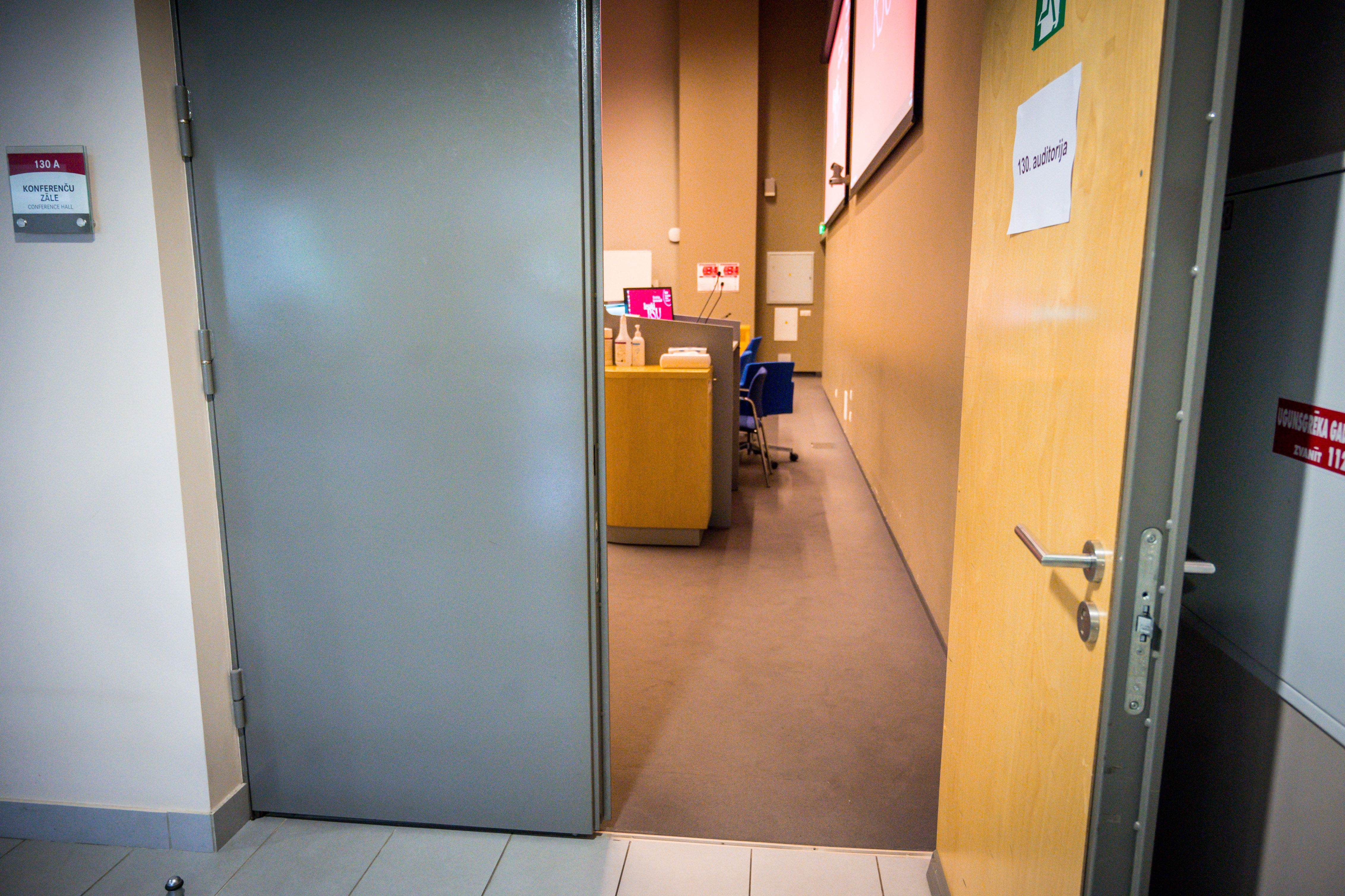 - Panduss vestibilā, lai nokļūtu uz ēdnīcu, liftu, garderobi, bibliotēku, brīvpieejas kopēšanas iekārtām u. c.
