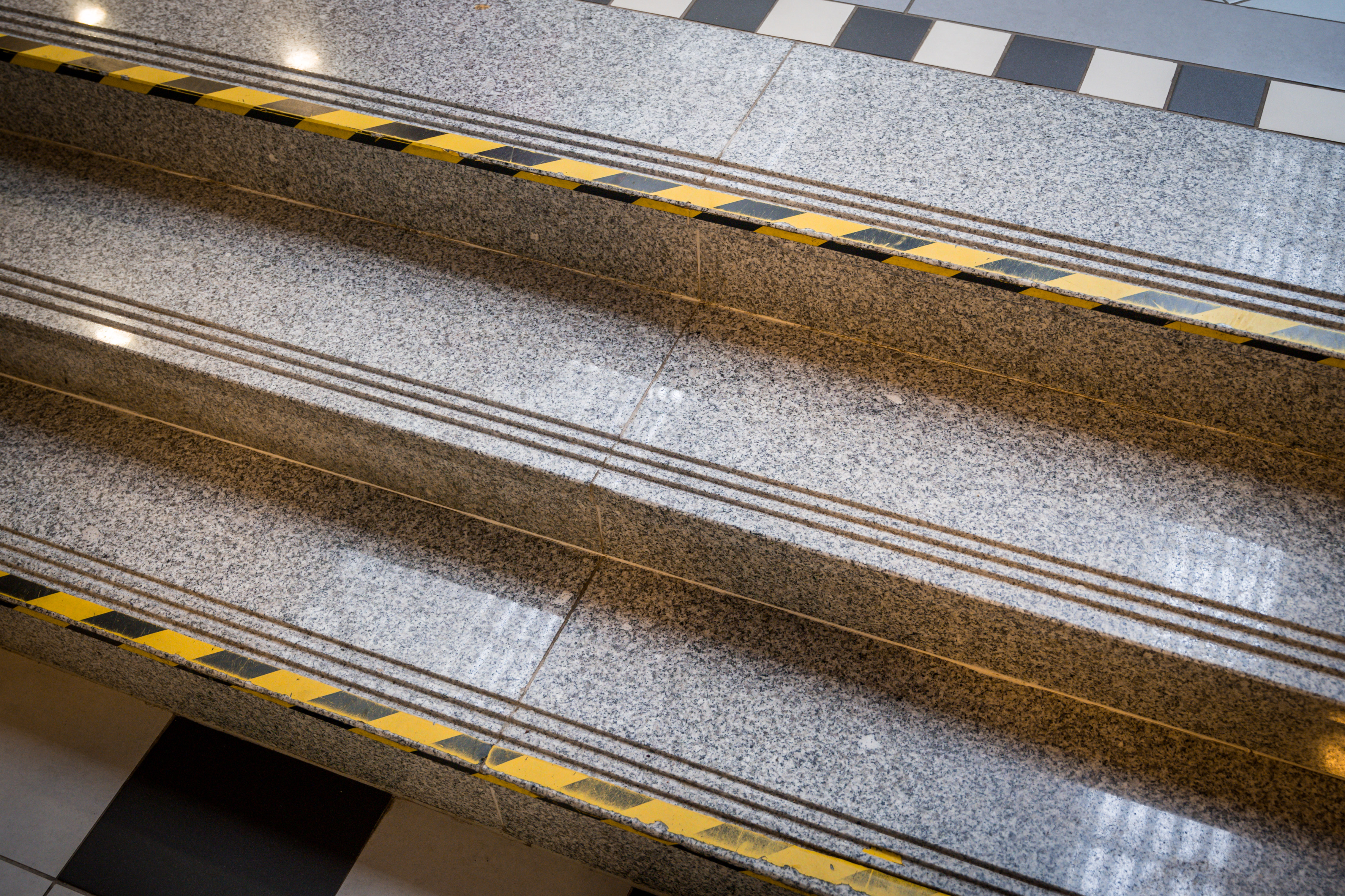 - Ar kontrastējošu krāsu marķēti pakāpieni