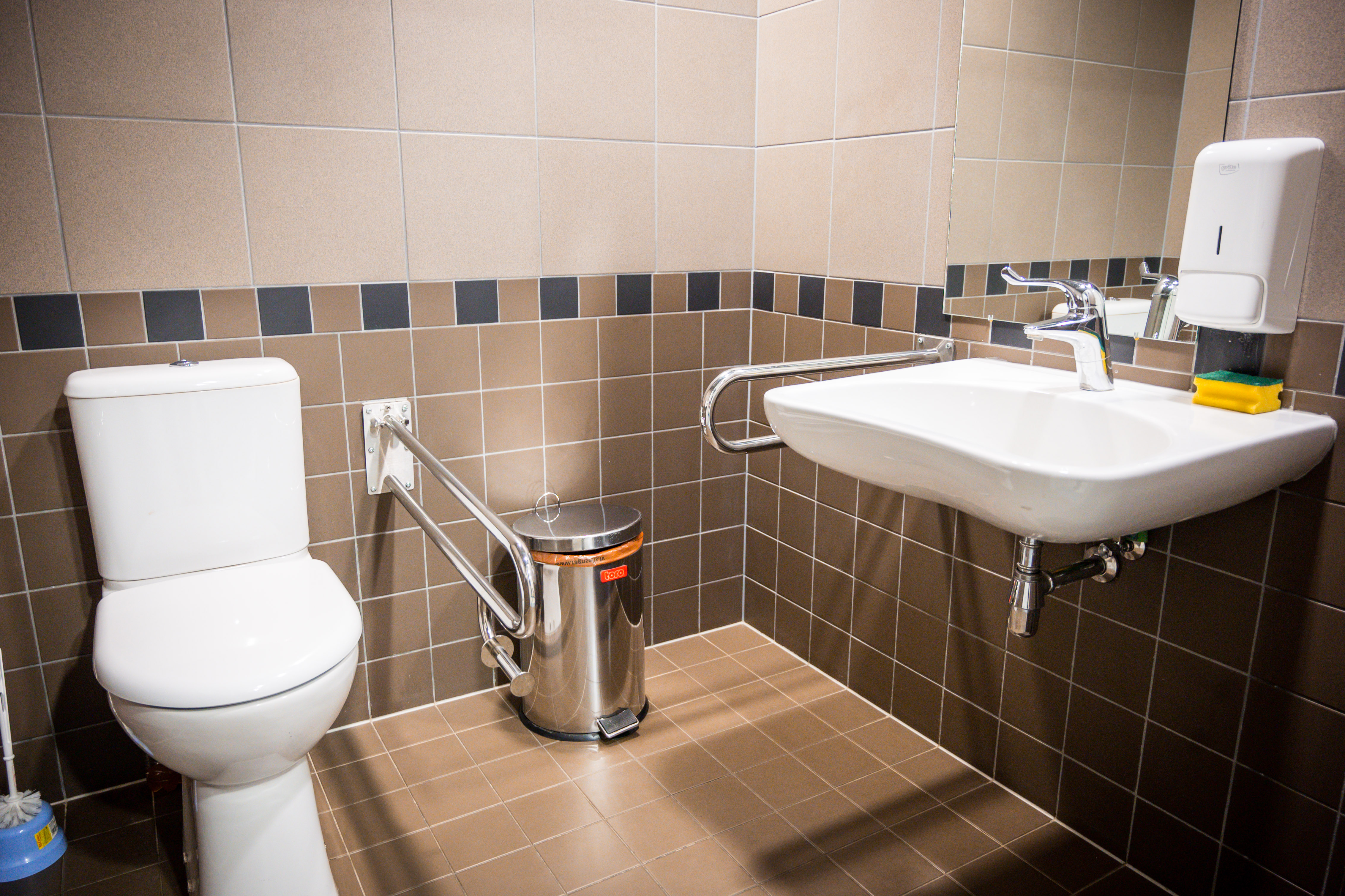 - Ērta iekļūšana ēkā personām ar kustību traucējumiem – ierīkots panduss, automātiskās durvis (kontrastējošas, stiklotas)
