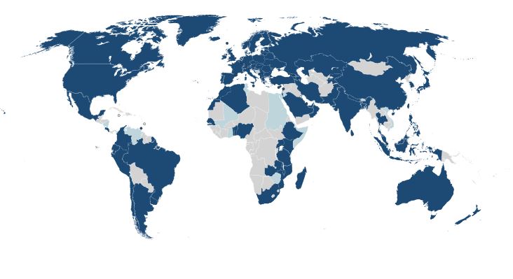 Zemāk skatiet attēlu ar visām vietām pasaulē (iekrāsots tumši zilā krāsā), kur var pieslēgties eduroam tīklam.Attēls iegūts no eduroam oficiālās vietnes eduroam.org.