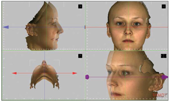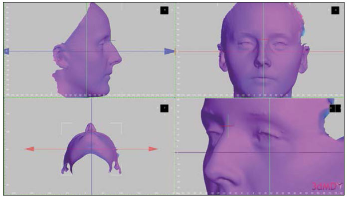 Interface of 3dMDVultus software, where the scans were superimposed (“lock rotation” function is enabled)