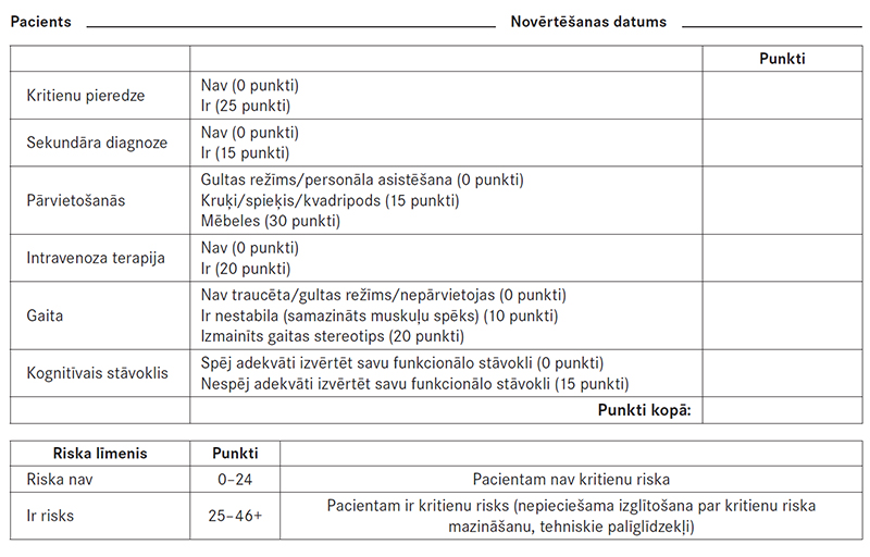 1. attēls. Kritienu riska novērtēšanas skala / Risk of fall assesment scale