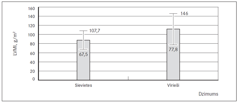 13. attēls. Kreisā kambara masas indekss (LVMI), g/m2 / Left ventricular mass index (LVMI), g/m2