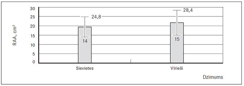 8. attēls. Labā priekškambara laukums (RAA), cm2 / Right atrium area (RAA), cm2