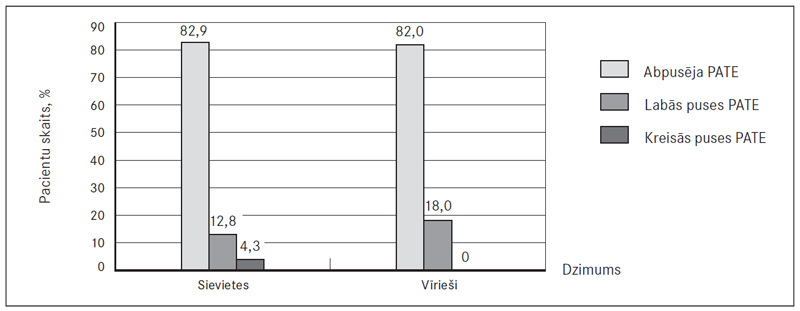 6. attēls. PATE lokalizācijas (abpusējas, labās vai kreisās puses) biežums / PATE localisations
