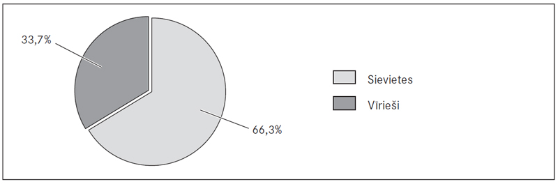 1. attēls. Pētījuma dalībnieku iedalījums pēc dzimuma / Patients by gender (%)