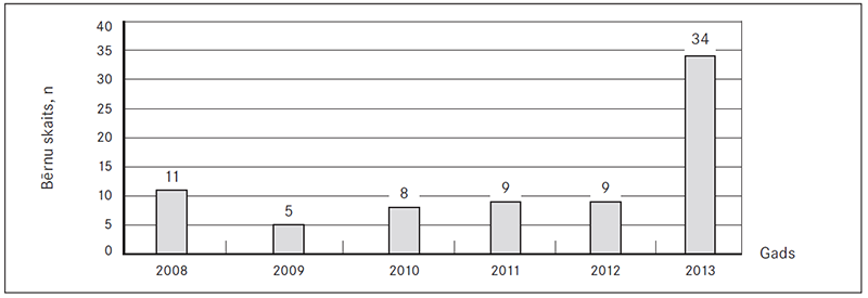 Materiāls un metodes. Tika veikts aprakstošs, retrospektīvs pētījums, analizējot visu pacientu (n = 76) datus, kuri ārstēti Bērnu klīniskajā universitātes slimnīcā laika posmā no 2008. līdz 2013. gadam ar gala diagnozē uzrādītu sepsi, atsevišķi salīdzinot 2013. gadu, kad slimnīcā ieviesti SIRS un sepses algoritmi, kā arī laika periodu no 1995. līdz 2000. gadam.
