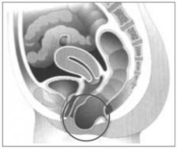 1. attēls. Rektocēles veidošanās taisnās zarnas priekšējā sienā / Rectocele in anterior wall of rectum (www.minzdrav-rf.ru/article/114/) | 2. attēls. Rektocēles un rektoanālas invaginācijas transanāla steiplerrezekcija / Transanal steiplerresection of rectocele and rectoanal invagination (www.proctology.de/obstipation.html) |